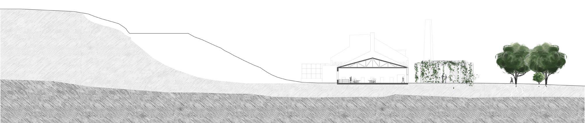 Post brick is a brownfield redevelopment of an abandoned brickworks factory in Hamilton, Ontario. This project leverages its industrial history to propose an urban ecology center and spontaneous garden spaces. Taking inspiration from the printmaking process of intaglio, which removes matter to allow for ink to seep, the landscape strategy of this project strategically removes pieces of the existing cracked concrete to allow for ruderal and spontaneous growth (typically known as weeds). Allowing the site to repopulate on its own accord exposes hydrological and geological patterns on the site of water flow, sediment history of the Niagara escarpment, and seed movement. Further, it allows toxic soils from industrial equipment and brick firing processes to remediate slowly and creates a paradigm shift that promotes the maintenance over the control of public green space. summer 2022 - landscape design studio