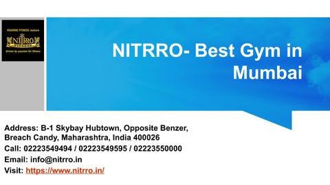 Nitrro is not just a gym, it's a way of life. Widely recognized as one of India's premium fitness destination. Nitro is an ISO certified 9001-2008 company, which is endorsed by top Bollywood stars and international athletes. Advance your training with nitrro functional training. Make a call now and know more.