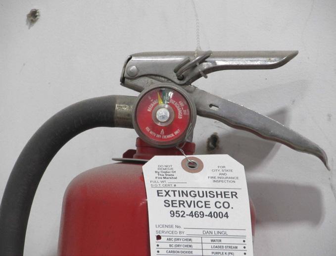 The fire extinguisher has its tamper seal in place - it hasn’t been usedbut it’s underpressurized. This is why we encourage monthly checks of extinguishers.