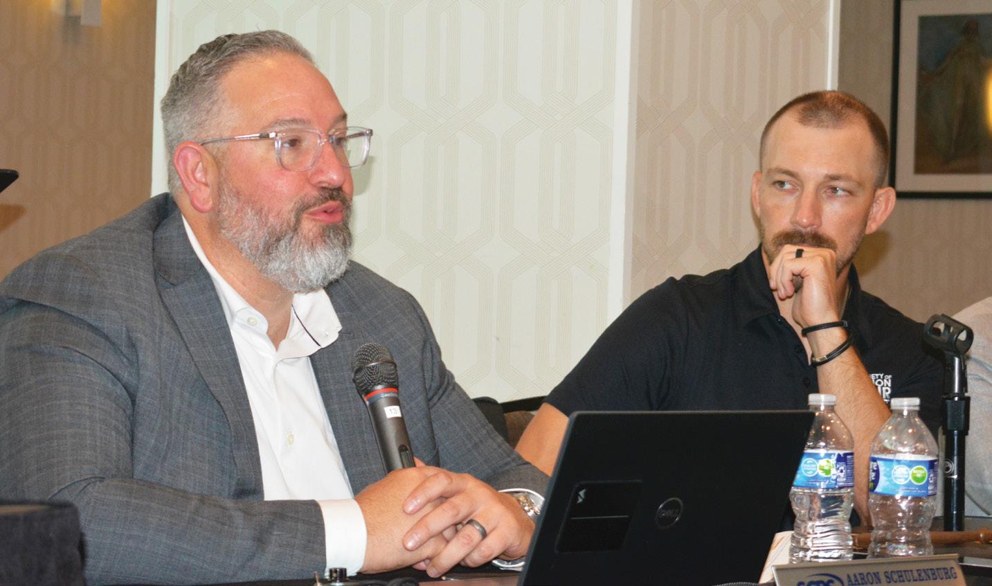 SCRS Executive Director Aaron Schulenburg addresses the audience while Michael Bradshaw looks on