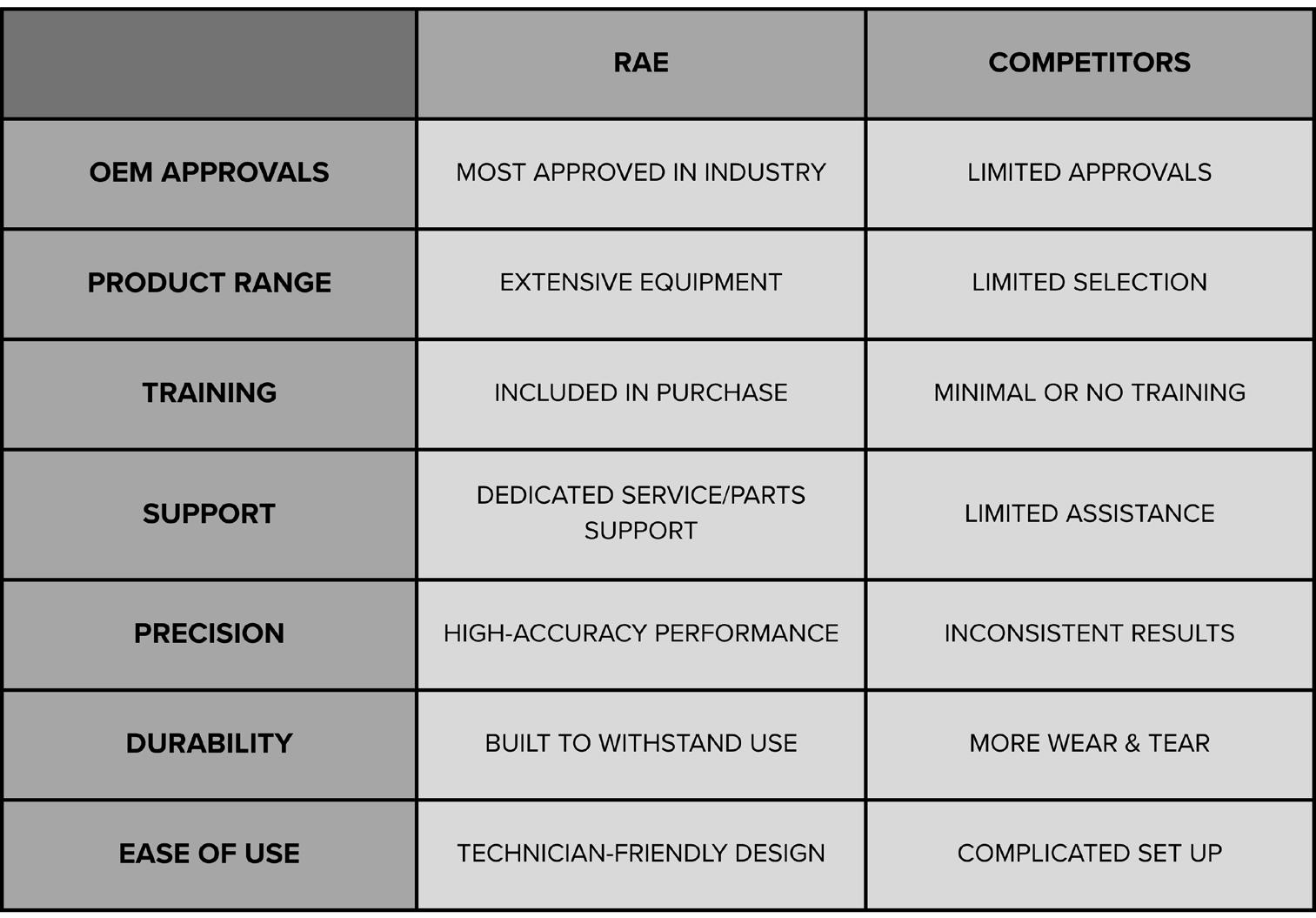 The RAE Body Repair Station features a curtain that has special light reflection as well as fire approved properties. This will isolate your aluminum work area from nearby bays. Accepted by leading OEM certified collision repair facility programs, the body repair station features an e-glass curtain that meets fire retardation standard EN-13501-1 (required by OEM certification programs across the globe). A built-in viewing window meets standards for eye protection of workers outside the aluminum bay. LED lighting helps provide ideal lighting