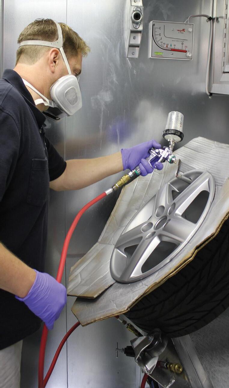 The vetting process was arduous but worth it in the end. "We did our research so that we could make an educated decision," he said "I went to NACE two years in a row and talked to literally ever yone and asked a lot of questions We knew that this was going to be a ver y significant investment, so we took the time to perform our due diligence to cover all our bases We invested in their prep stations as well, which was another good decision, because my guys can work so much faster and effectively with five different places where we can spray We put a curtain up in the prep booth that provides us two additional spaces that are heated and properly ventilated So, when we are really jammed, we can handle the workload and maintain our cycle time without interrupting or slowing down our production "