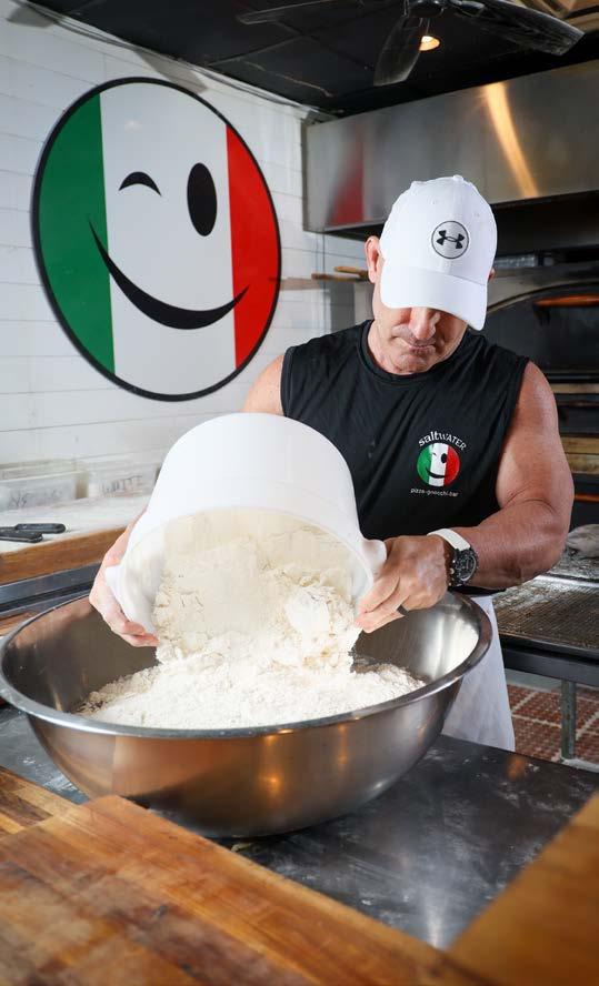 To make authentic pizza that is Saltwater approved, the Salvos start with fine quality ingredients, mostly imported from Italy. Then, they hand mix small batches of dough in bowls that are scattered around the restaurant — the oldschool way never ever using a mixer. Salvo explains why they pride themselves in ensuring quality, “We never forget that we are only as good as our last pizza.”