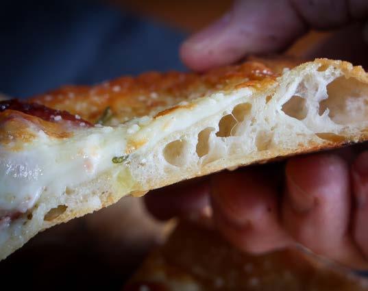 EATS its doors four years ago, the Salvos decided to serve square pies because it was something different, and “they simply love it!” For example, the Italian Vegetable is a white Sicilian pie covered with roasted and sautéed peppers and grilled eggplant with a balsamic drizzle. If you’re thinking of a too-thick and doughy Sicilian, fugget about it! Whether red or white, their square pies are just right and crispy-thick like Sicilian, but amazingly light and airy.