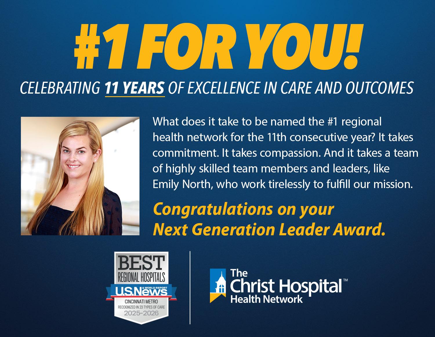Emily North is the Marketing & Internal Communications Manager for The Christ Hospital Health Network and a visionary leader behind elevating its Heart & Vascular Institute as Greater Cincinnati’s Heart Hospital. She leads communications for 6,500+ team members and drives strategies that have fueled patient growth, enhanced physician visibility, and advanced the goal of becoming a nationally ranked Top 20 program. A Cincinnati Business Courier 40 Under 40 honoree, Emily is also the 2025 Greater Cincinnati American Heart Association Woman of Impact Winner and Finance Chair and Board Member for Healthy Moms & Babes. She was selected by Mayor Ron Washington and his team to join the highly competitive inaugural Covington Mayor’s Academy. Emily loves her Mainstrasse Village community, where she and her husband are raising their young family, and she is passionate about building stronger communities and shaping the future of Northern Kentucky.
