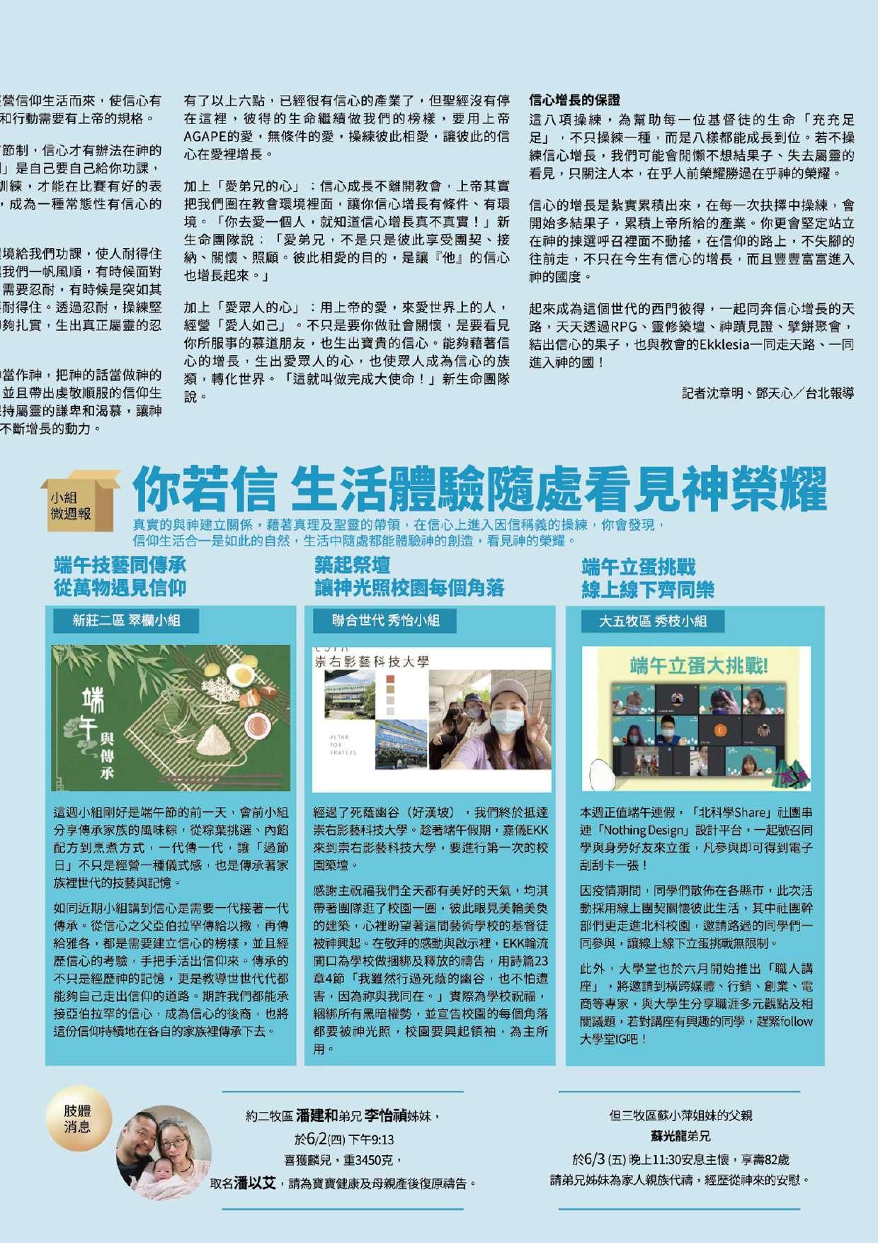 2022/6/10—6/12《靈命關懷中心》新生命小組教會週報