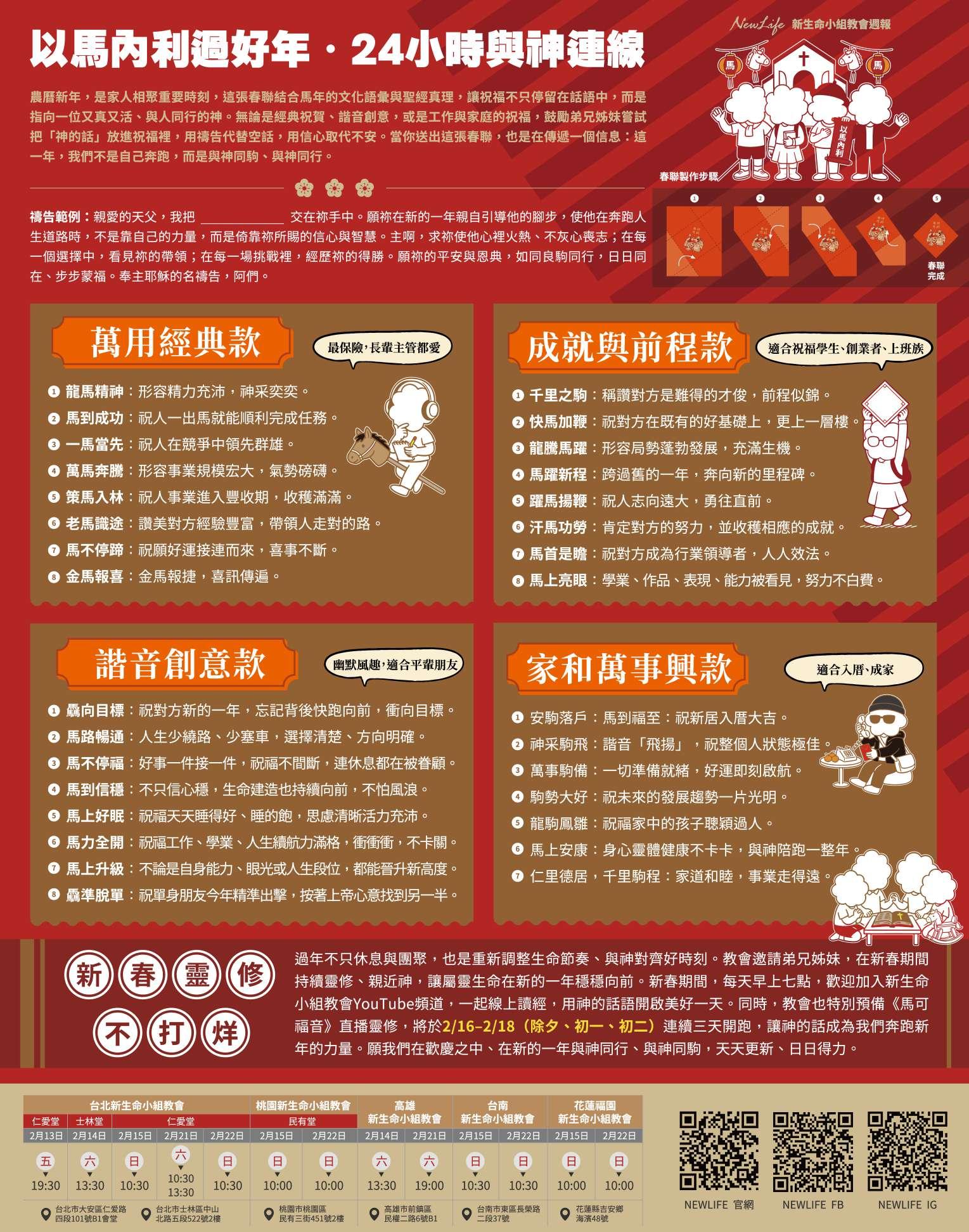 2/13-2/15《 與神同駒 》新生命小組教會週報