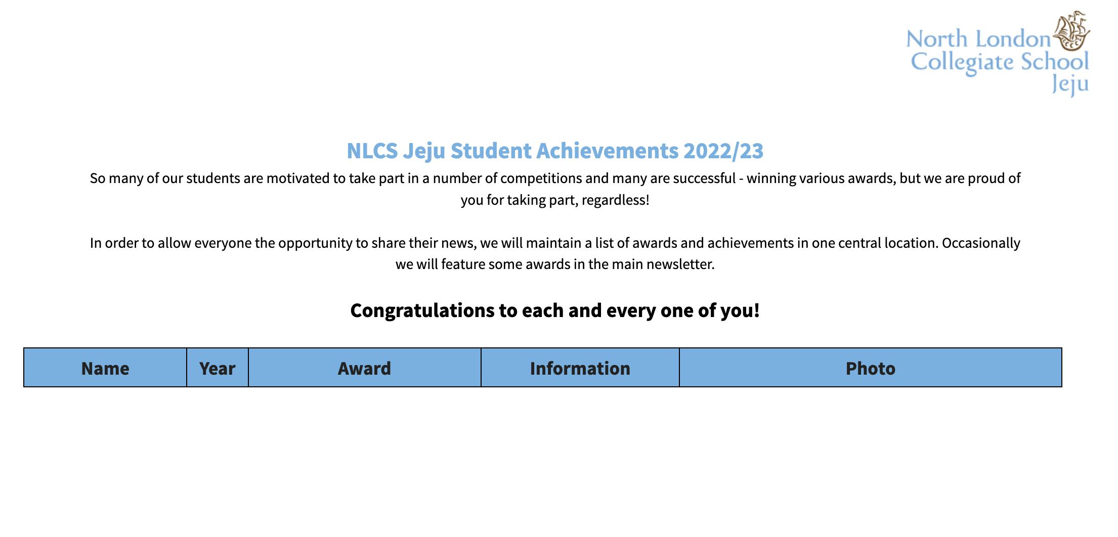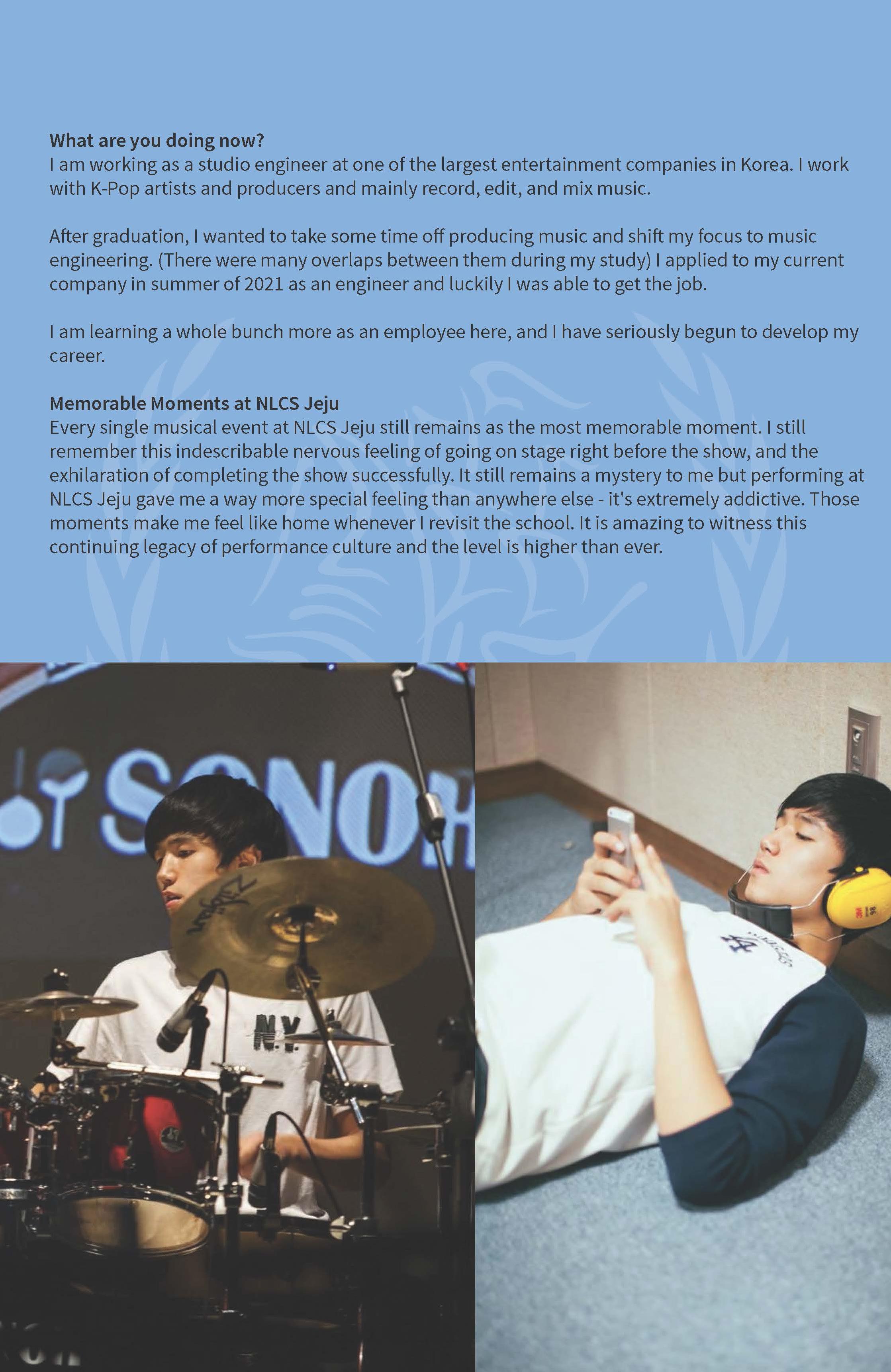 如果您也想让北伦敦济州社区了解您毕业后的近况,请立即邮件Ms. Shin吧! - alumnioffice@nlcsjeju.kr.