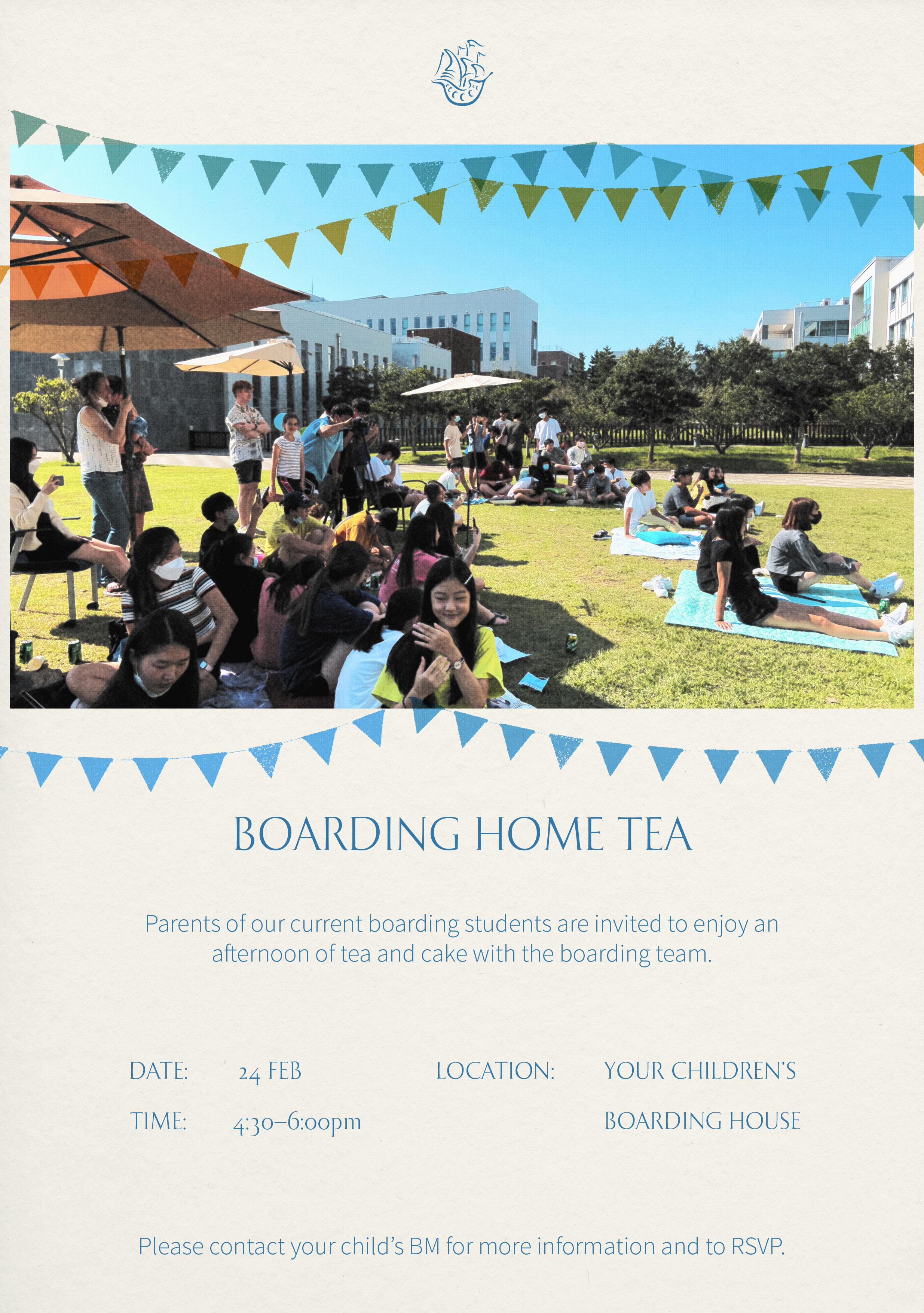 我们诚挚地邀请住校生家长来孩子宿舍参加茶话会。在因新冠暂停后,很高兴能 重新举办这样温馨可爱的活动。