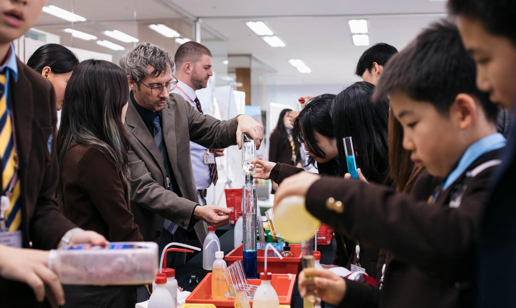 每逢课休和午餐时间,走廊上总充满了各种惊叹声,因为我们的学生们可以在图 书馆外就能进行五花八门的实验。这是非常激动人心的一周,可以说我们都被化 学系主任Mr. Derek Patenaude和他的团队安排的活动所鼓舞。感谢每一位为这 次活动的成功提供帮助的成员 More pictures.