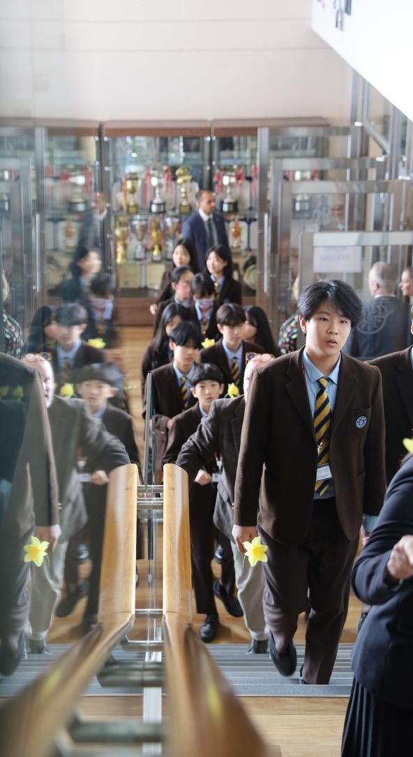 참가하는 학교 설립 기념일의 전통행사인 수선화 퍼레이드가 있었습니다.