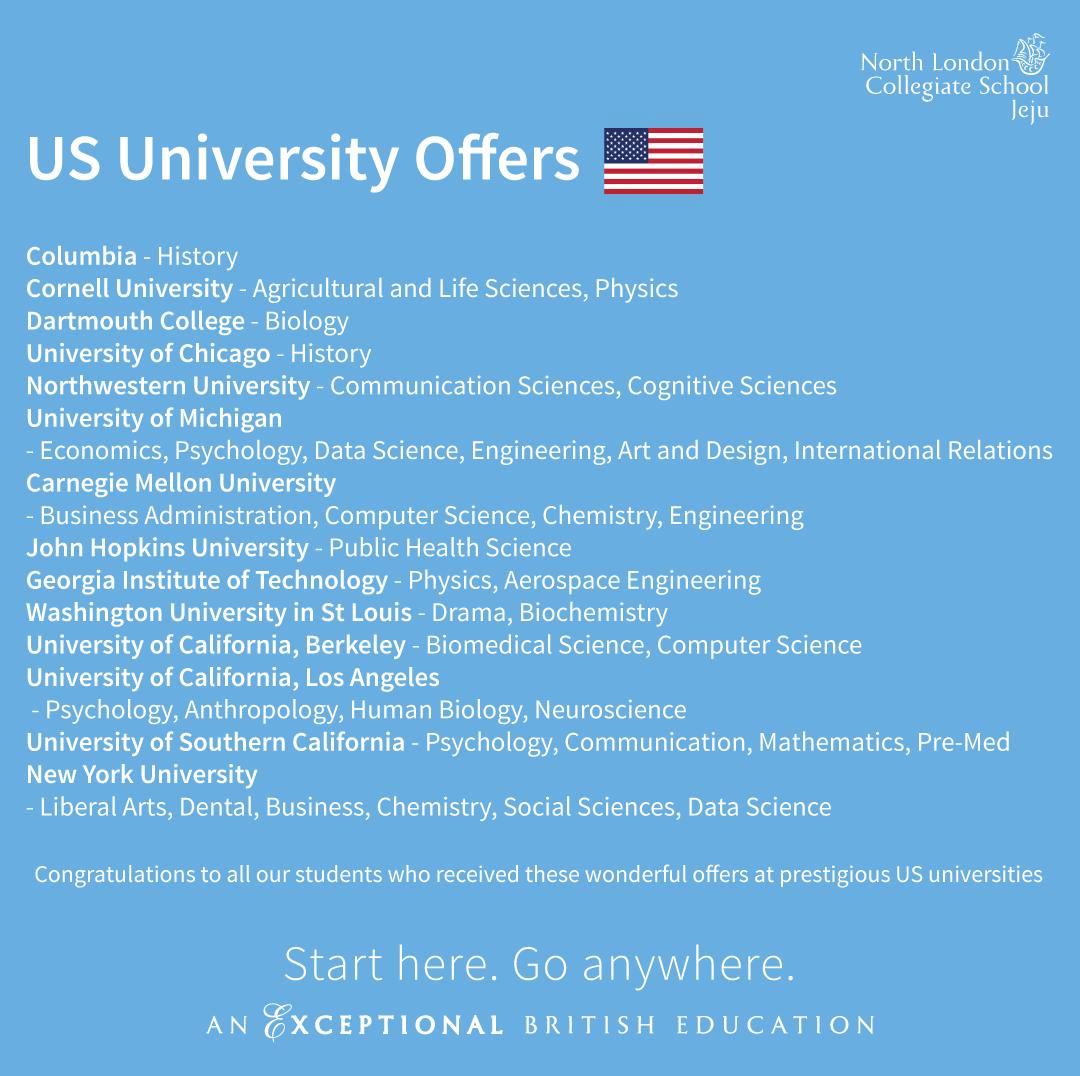 Congratulations to all our students who received offers from world class US universities! If you would like to share your news and talk about your NLCS Jeju journey and your future plans in the USA, please email marketing@nlcsjeju.kr, we would love to hear from you.