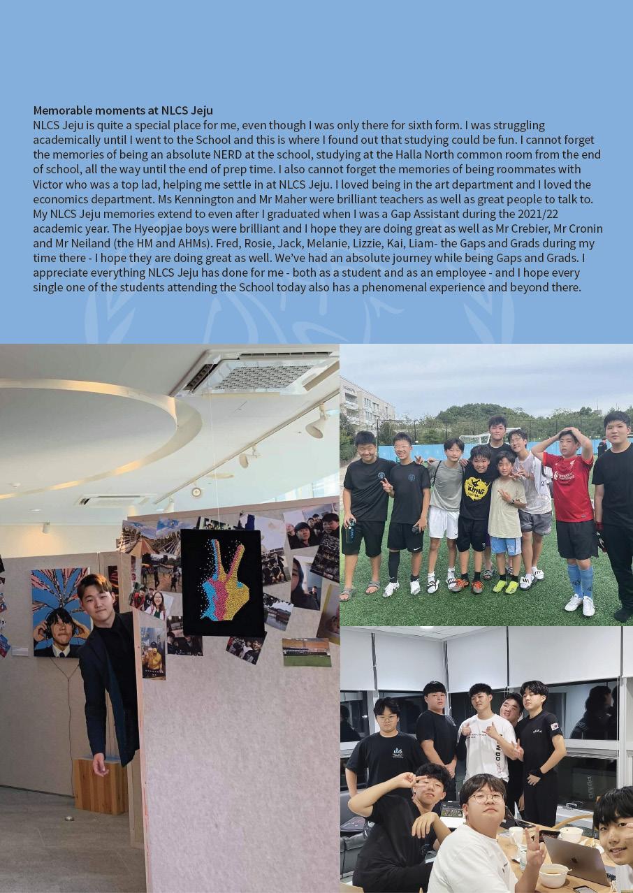 본인의 최근 소식과 이야기를 들려주고 싶은 졸업생은 언제든지 Ms. Shin 선생님 (alumnioffice@nclsjeju.kr)께 이메일 부탁드립니다. 여러분의 소식을 언제나 기다립니다.