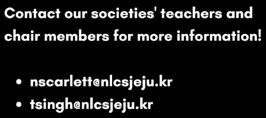 LOST PROPERTY GRADUATE ASSISTANTS 주니어스쿨에서는 지금까지 습득한 분실물을 따로 테이블로 준비하여 학부모님께서 직접 보고 찾아갈 수 있는 시간을 마련하였습니다. 이름이 적혀 있지 않은 물건은 주인을 찾기 어렵습니다. 행여 분실하더라도 빠르게 다시 찾을 수 있도록 반드시 교복과 학교에 가져오는 모든 물건에 학생 이름을 표기해 주실 것을 다시 한번 당부 말씀 드립니다. 2023년 8월 그래드(Graduate) 보조교사 프로그램을 모집합니다. 다양한 업무 경험과 잊지 못할 추억까지 함께 가져갈 수 있는 절호의 기회이니, 관심 있는 학생 또는 지인이 있다면 지원(요건: 학부 졸업생)할 수 있도록 적극 독려 부탁드립니다. NLCS Jeju 동문도 언제든지 환영입니다! 자세한 설명 및 신청 (https://bit.ly/graduateassistants)은 링크를 참조