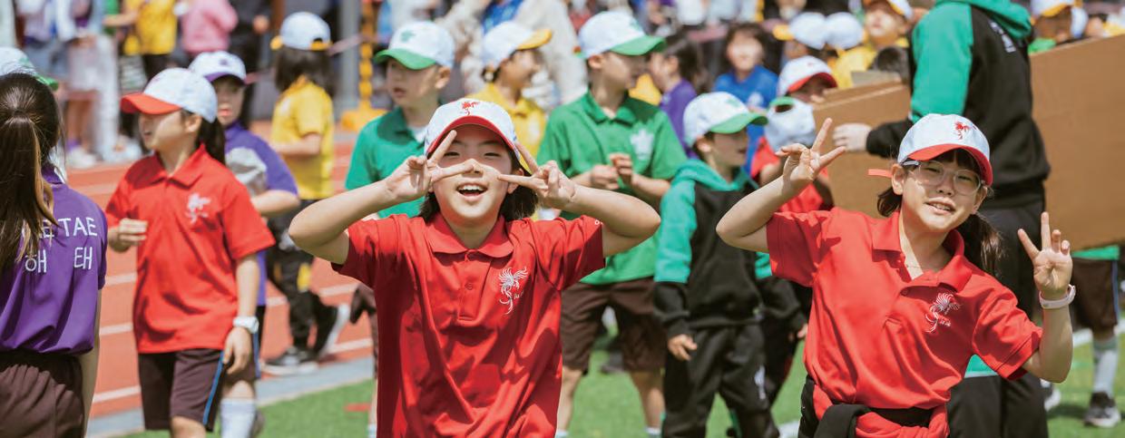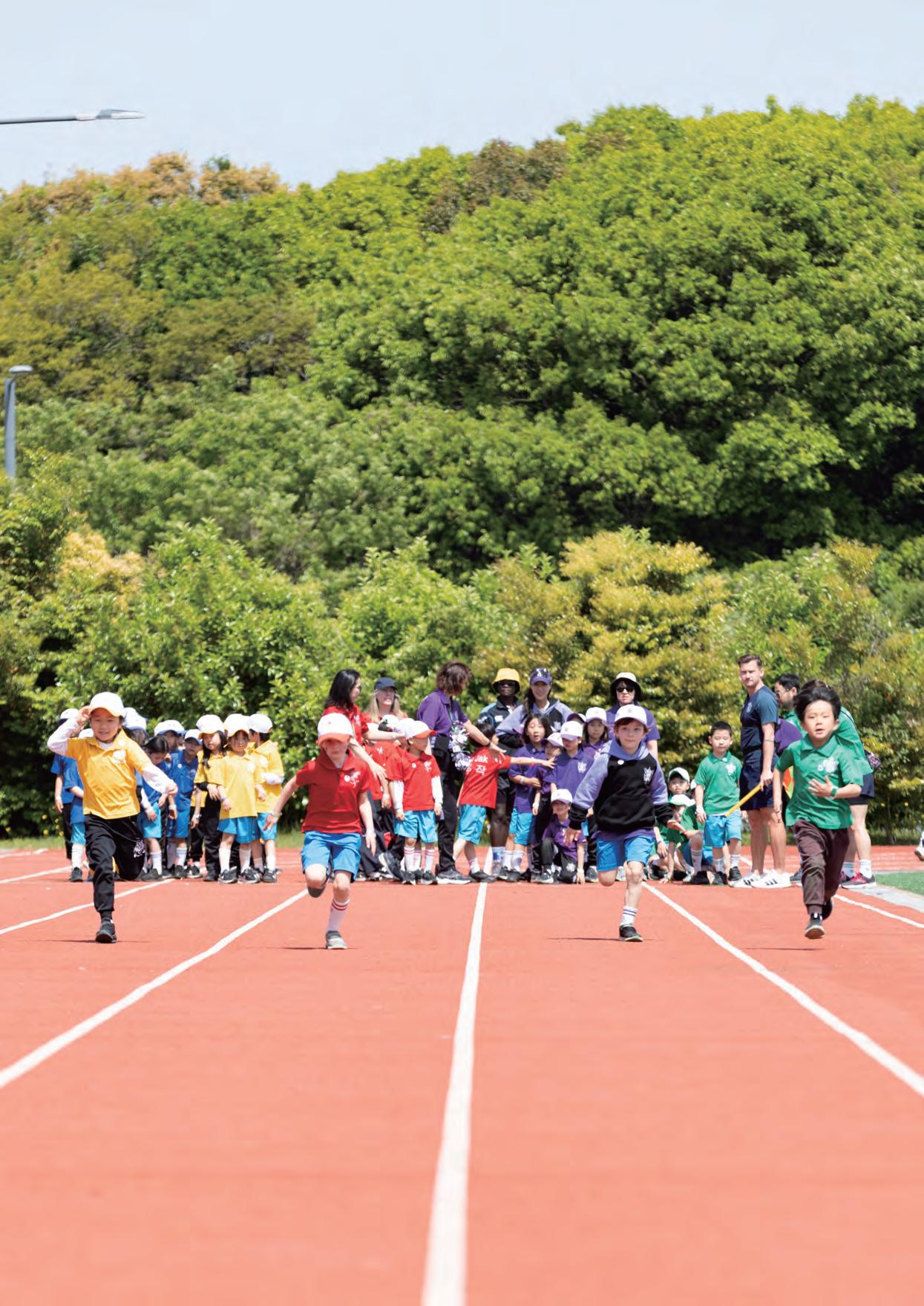 学院竞赛为学生提供探索新兴趣、尝试多样活动的绝 佳机会。竞赛项目丰富多元,涵盖各类体育赛事和非 体育的学术、创意活动,包括才艺展演、越野赛、国 际象棋、公开演讲、拼字比赛、常识问答、以及足 球、篮球、游泳和田径等项目。这些活动培养沟通能 力、领导力和团体协作精神,每年积分最高的学院将 荣膺学院盾牌奖,这一殊荣不仅激发学院成员的自豪 感,更赋予他们共同努力后的强烈的成就感。