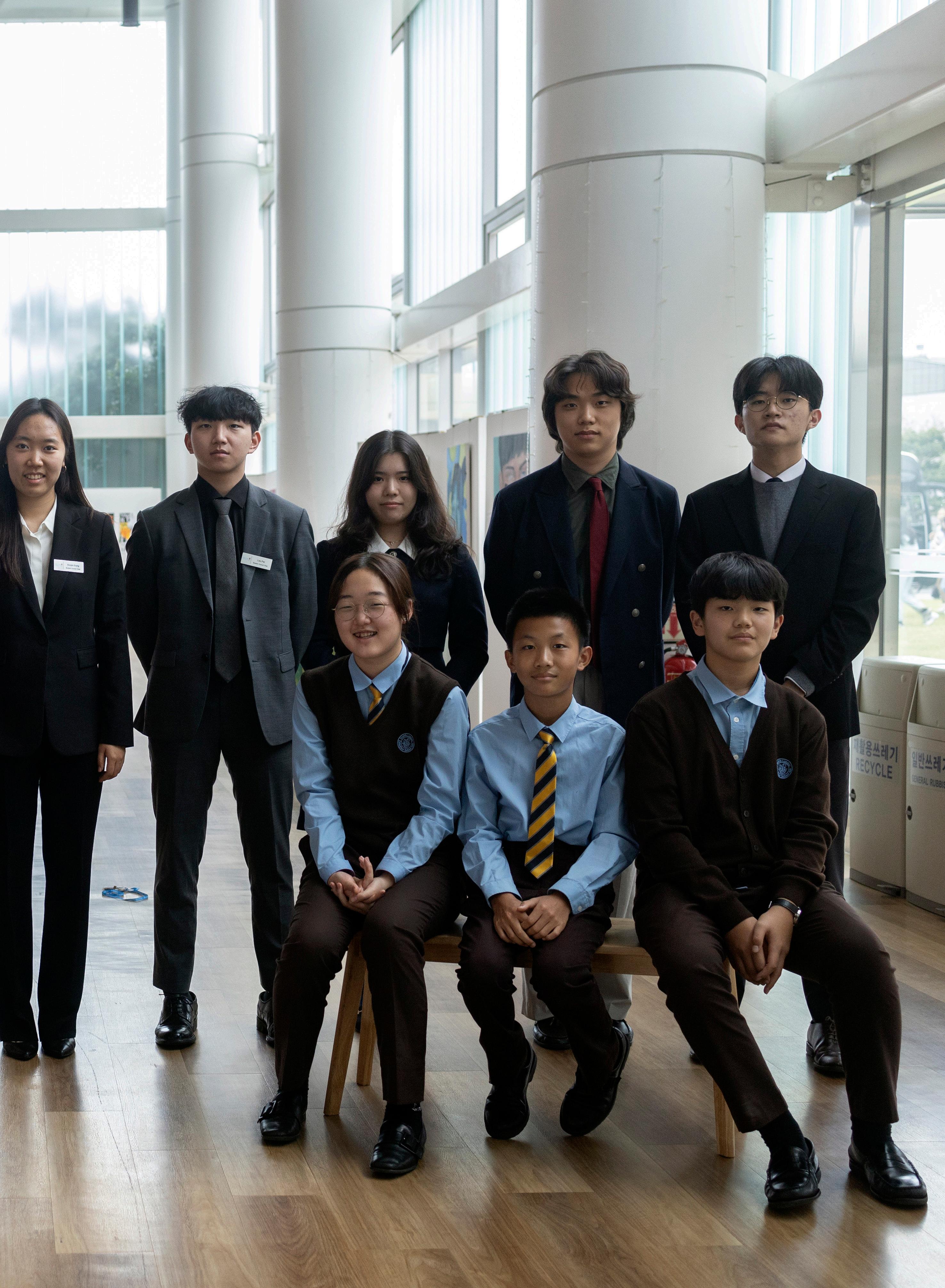 课外活动级长 - William Kim, Brandon Yoon, Aaren Kang, Amy Kim, Stella Han and Seobin Lee. Led by Jiyoon Lee (Joined by Taehwan Lee and Lucy Jee)