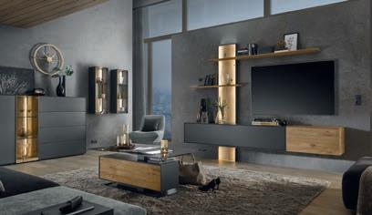 Schütte-44-22-08-09 04 01 02/03 02/03 04 05 Industrial Look pur: Massive Eiche kombiniert mit schwarz lackiertem Stahl. 05 Sideboard RAUM.FREUNDE Kai, Korpus und Frontblende massive astige Eiche natur mit Absetzungen in schwarz, Metallrahmen matt schwarz lackiert, 2 Türen, 3 Schubladen, BHT ca. 169x83x44 cm ab 1350.ab 998.Eröffnungs-Preis 02 Lowboard RAUM.FREUNDE Kai ab 1249.Eröffnungs-Preis 01 Highboard RAUM.FREUNDE Kai RAUM.FREUNDE Kai: Hochwertig gearbeitete Stauraumserie aus mattschwarz lackiertem Stahl, schwarz lackierter Eiche und massiver, asti ger Wildeiche 01 Highboard RAUM.FREUNDE Kai, 2 Türen, 2 Schubladen, 1 Weinregal, BHT ca. 64x173x39 cm 02 Lowboard RAUM.FREUNDE Kai, ohne TV-Brücke, 2 Türen, 2 Schubladen, BHT ca. 165x42x53 cm 03 Lowboard RAUM.FREUNDE Kai, mit TV-Brücke, 2 Türen, 2 Schubladen, BHT ca. 212x57x44 cm. TV-Brücke erhältlich in zwei Größen, beidseitig montierbar 04 Wandregal RAUM.FREUNDE Kai, BHT ca. 54x54x29 cm ab 215.03 Lowboard RAUM.FREUNDE Kai, mit TV-Brücke ab 1365.-