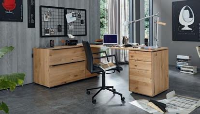 Homeoffice-Schreibtisch PUERTO, verwandelbar, in Asteiche massiv, bianco geölt, BHT ca. 182x76x60 cm. Abb. zeigt B ca. 182 cm, in unserer Ausstellung B ca. 152 cm ab 3952.Ein wahres Highlight: Die naturbelassene Baumkante sorgt für eine außergewöhnlich schöne Ausstrahlung. Schütte-44-22-06-07