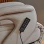 Alle elektrischen Funktio nen werden mit der Fern bedienung gesteuert. Rückenlehne, Fußstütze und Kopfstütze sind ge trennt voneinander in jede gewünschte Positi