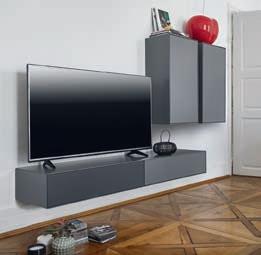 Regal mit Sekretär RAUM. FREUNDE Henri, Front Lack weiß, Korpus und Böden Lack matt weiß, Trägerprofil schwarz pulverbeschichtet. 2 Fachbö den, Sekretär mit 1 Klappe und 1 Schublade, inkl. Kabeldurch lass, ohne Beleuchtung, BHT 97x210x32,5 cm ab 1299.Mediakombination RAUM.FREUNDE Henri, bestehend aus: Mediaelement RAUM. FREUNDE Henri mit Schublade, inkl. Kabeldurchlass aus Metall, in Lack matt graphit, Klappe mit Akustikstoff graphit, BHT ca. 180x23x42 cm, ohne TV, und 2x Hängeele ment RAUM.FREUNDE Henri Korpus mit Tür, Push-to-open, inkl. 1 Fachboden, in Lack matt graphit, BHT ca. 46x90x33 cm.