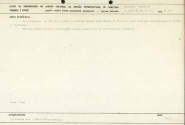 Para retirar esse acervo documental da prateleira e contribuir com a produção e difusão de conhecimentos sobre esse acervo patrimonial, o projeto cultural se propôs a rever o conteúdo do Plano de Preservação do Acervo Cultural (PPAC-RMC), cujos documentos originais pertencem à Comec. Iniciamos em 2016, com o projeto cultural Patrimônio Edificado de Curitiba: armazenamento digital e sistematização de informações das Unidades de Interesse de Preservação (UIPs), no âmbito da Lei de Incentivo à Cultura de Curitiba; e, seguimos de 2019 a 2022, com o projeto Patrimônio Edificado da Região Metropolitana de Curitiba, amparado na Lei de Incentivo à Cultura do Estado do Paraná.