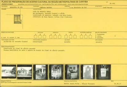 Ao longo do tempo, o processo social de transmissão das heranças culturais e históricas é abarcado por um processo oficial, que escolhe e regulamenta normativas para a preservação do patrimônio edificado. Em Curitiba, essa preservação se torna parte da política municipal de forma mais efetiva a partir de 1966 com o estabelecimento de diretrizes no Plano Diretor e em 1971 quando delimitado o Setor Histórico de Curitiba. Nesse contexto, a pesquisa de 1977 é uma das mais aprimoradas e amplas sobre o acervo de edificações antigas da região.