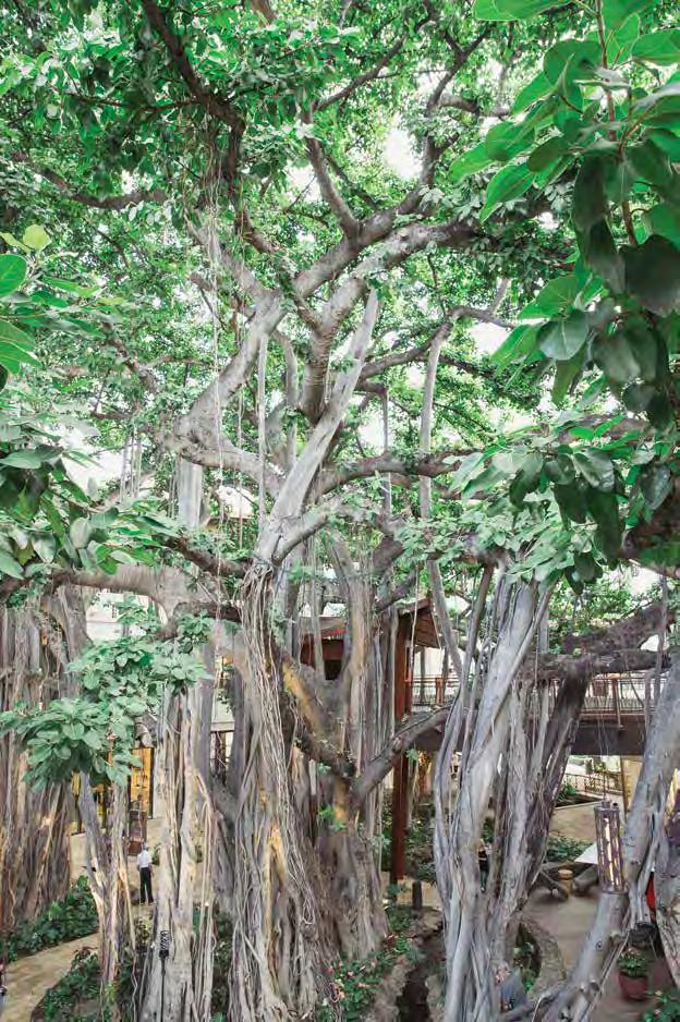 Known as Kaluaokau in the days of Hawaiian royalty, International Market Place possesses an allure that is much the same now as it was back then—attracting not only locals but also entertainers, celebrities, and visitors from around the world. That allure has existed at International Market Place since its opening in 1957. For decades, the charm of this wahi pana (storied place) was present in the display of cart vendors selling tropical trinkets, the array of exotic eateries, and the famous venues for live entertainment. In bringing the past to the present, Banyan presents a fascinating cultural perspective on Waik ī k ī and offers a glimpse of why International Market Place has been a sought-af er destination for centuries.— AARON J SALĀ AND MĀLIA P. KA ‘ AIHUE
