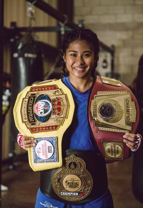 At a boxing gym in Waipiʻo Gentry, Oʻahu, photographer John Hook took this photo of Bree Locquiao, the first female flyweight from Hawaiʻi to win the Women’s National Golden Gloves championship title. Currently, she has her sights set on representing the Islands in the Olympics. Hook dropped in on a training session with Locquiao as part of our photo essay, on page 66, focusing on local athletes, dancers, and entertainers who use motion to inform their everyday beings, both physically and mentally. Watch these subjects in motion in our immersive video series, which can be viewed online and across our @fluxhawaii social media channels. This content is part of an exciting line of lifestyle programming for the NMG Network, a newly launched video platform airing across Hawai‘i and worldwide.