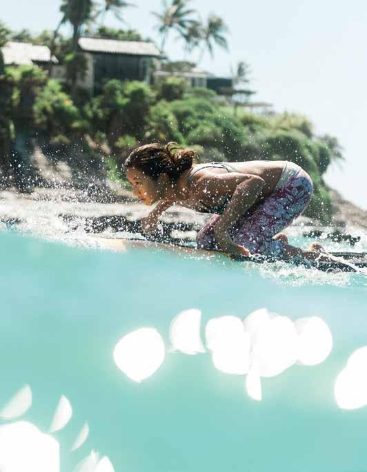 Next, Zyons has us partner up (rule no. 1: never dive alone) before moving to Lumeria’s pool to practice static apnea exercises, basically the dead man’s float. My partner effortlessly pulls off a twominute hold on her first attempt. I follow, and barely keep my face in the water for 30 seconds. Despite the buoyancy of my wetsuit, Zyons can see my body is tensed: My elbows are locked, neck strained. “Relax,” he urges.