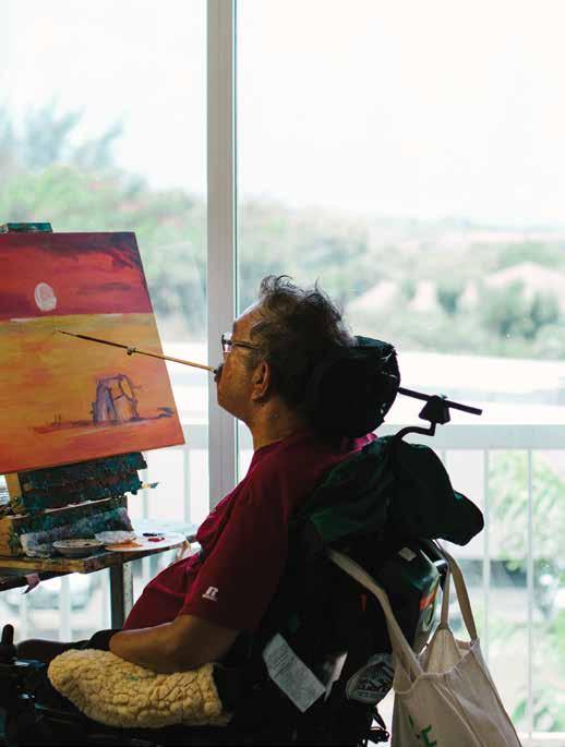 � In defiance of his disability, Matthew Kaopio puts brush to canvas using his mouth to create fantastic works. This method has also doubled as a form of therapy, he says. “I became a lot more accepting of my situation.”