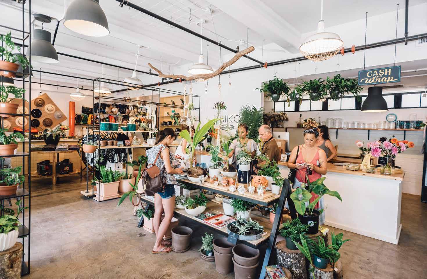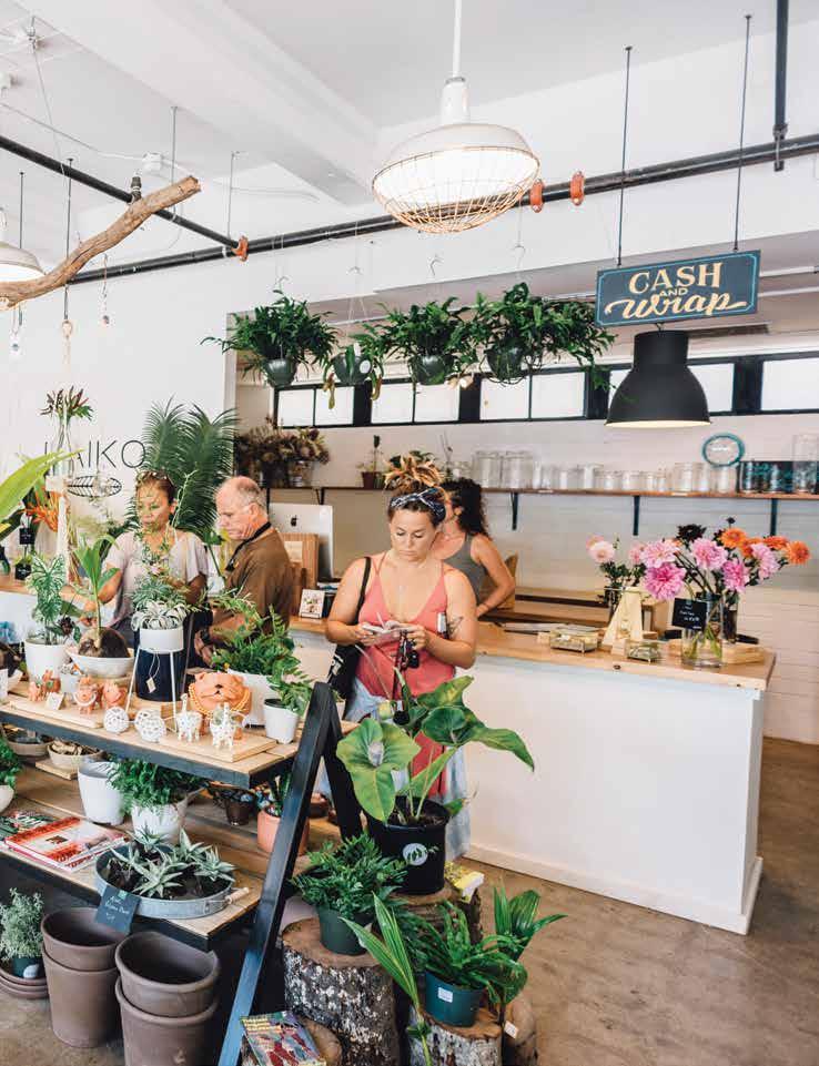 Shown left, Milo, a lifestyle boutique that shares a space with the popular café Arvo and floral shop Paiko, shown above.