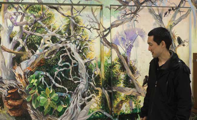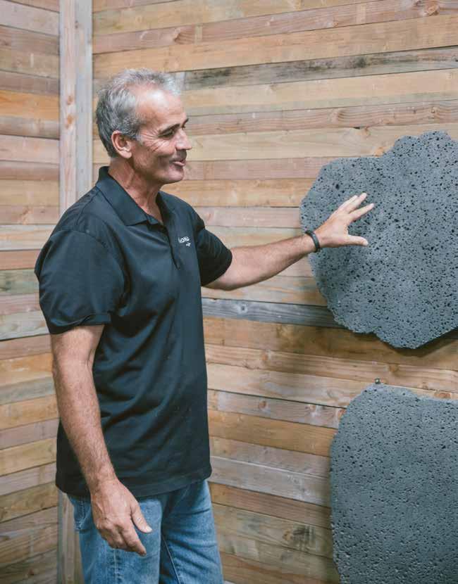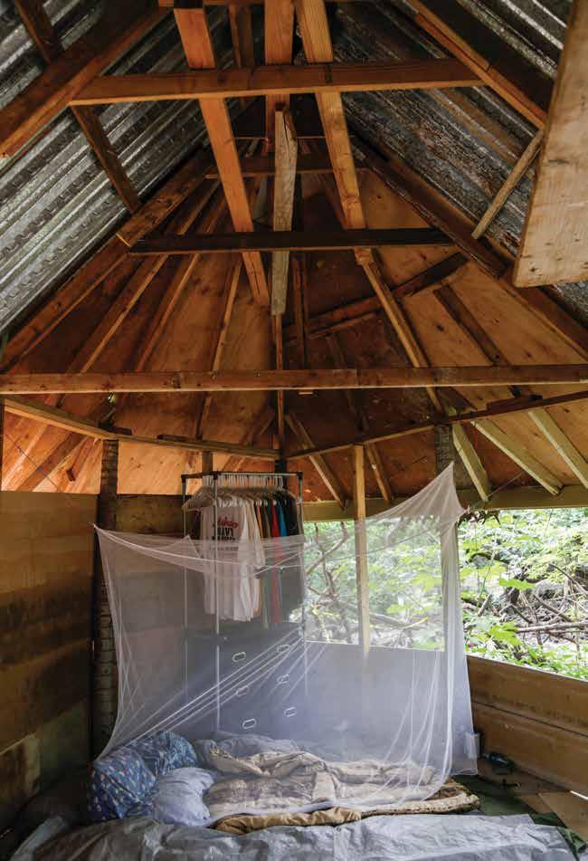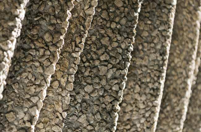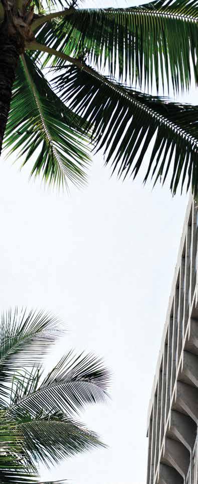 Some architects think concrete buildings still have much to offer the islands. In his office at University of Hawaiʻi at Mānoa, Martin Despang, a professor of architecture, has a model of a speculative project dubbed Primitiva, envisioned as 30 stories of exposed concrete softened by wood finishes and left open to the air, with each residential unit screened by bamboo. Unlike the hermetically sealed steeland-glass towers rising in Kakaʻako, Primitiva would take advantage of the island’s cooling tradewinds through what’s known as the stack effect, in which a central courtyard pulls cool air through the building as warm air rises. As for the concrete, Despang sees it as an indigenous material able to be made here on the islands.