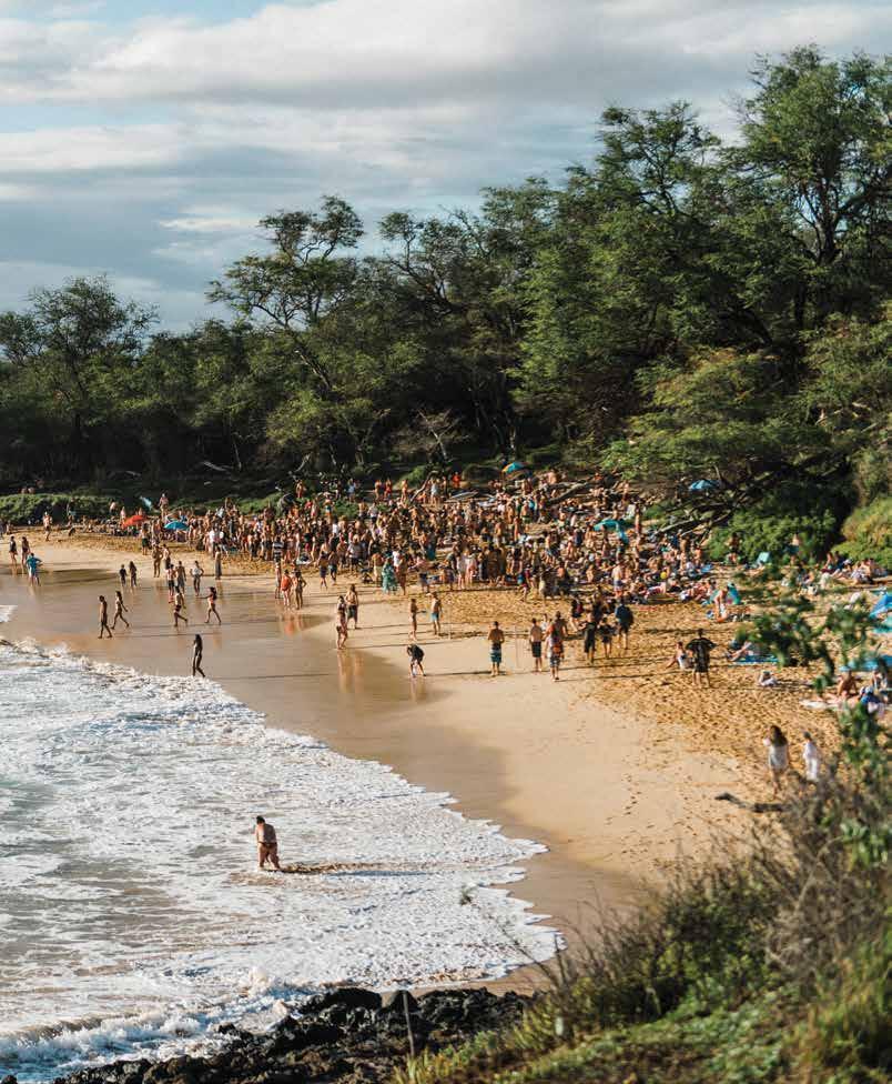 ancient Hindu temple that has stood watch over the break for centuries and is inhabited by monkeys, only added to the area’s lore. In 1974, Hawaiian surfer and two-time Pipeline Masters champion Gerry Lopez witnessed the wave with his own eyes. “It was as magnificent a sight as any surfer could behold,” he wrote in his book Surf Is Where You Find It . “We had just walked up to the gateway of paradise.”