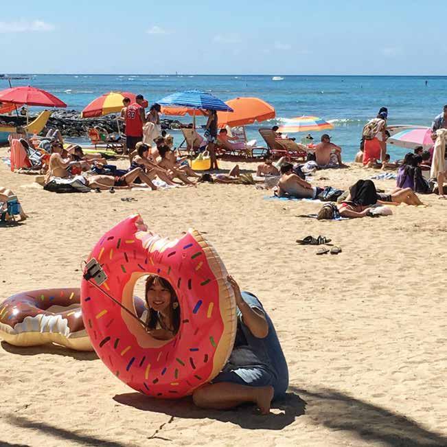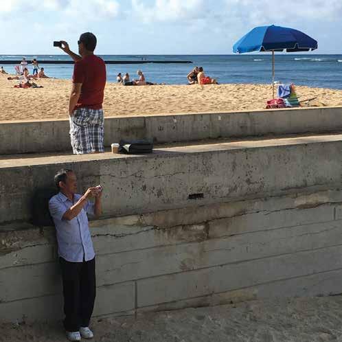 by renting chairs, umbrellas, surf boards.” Even though he admitted he “only owned one surfboard” in his life, he boasted he was about to have hundreds. Dive Oahu is now the most noticeable presence on a beach frequented by travelers who will get their first taste of Hawai‘i’s surf and then pose for photos beneath the bronze hands of Duke Kahanamoku, one of the original beachboys.