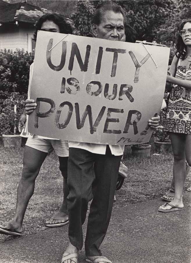 We see this on vibrant display in the formation of the Pōpolo Project, whose members, part of a group that makes up less than 4 percent of Hawai‘i’s population, reappropriated a term of derogation into one of power; in the community of Pu‘uhonua o Wai‘anae, whose formerly homeless inhabitants strode down a path to a place of purpose and belonging; in the legacy of Ed Greevy, whose images documented the people and purpose of social movements from a few decades past that still have the power to unite us again today. And while it would be all too easy to hunker down and indulge the tribes of people that look, sound, and think like we do, it is only when we venture out from beyond the barriers that separate us that battle lines can truly be broken.
