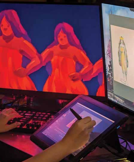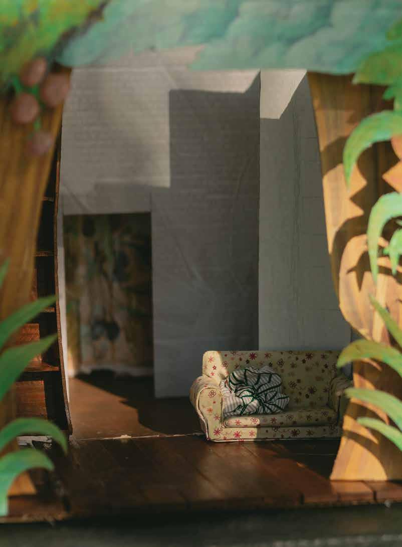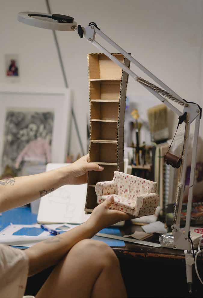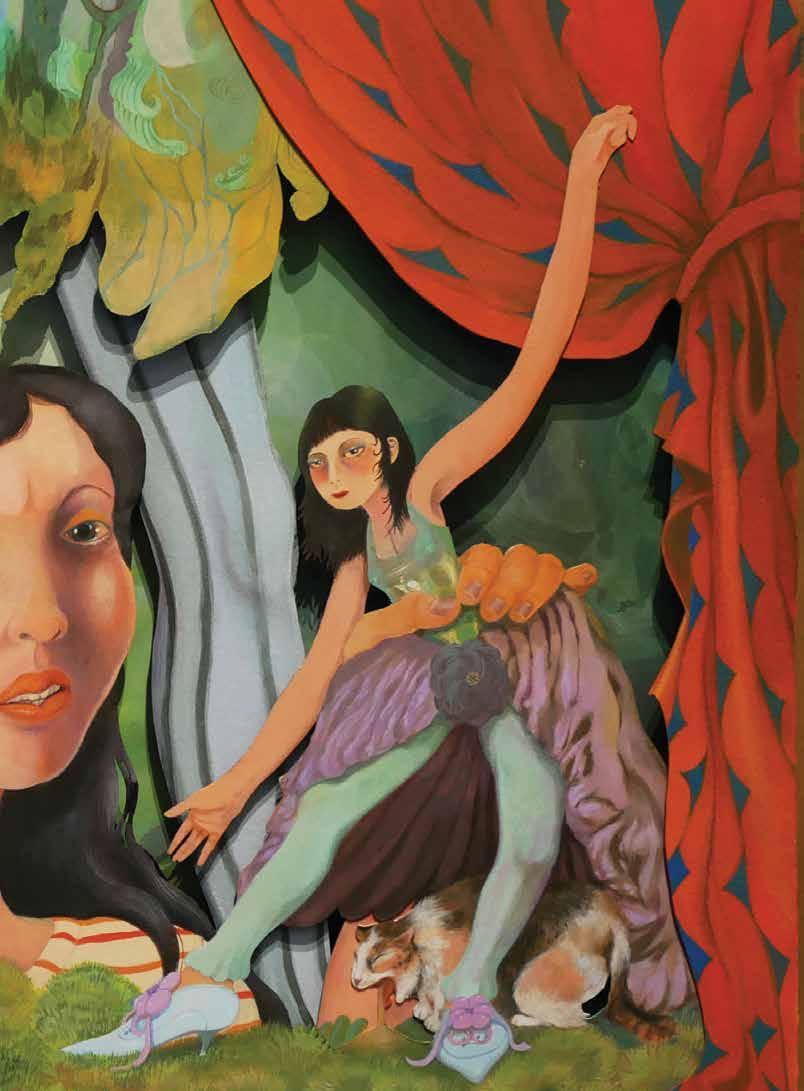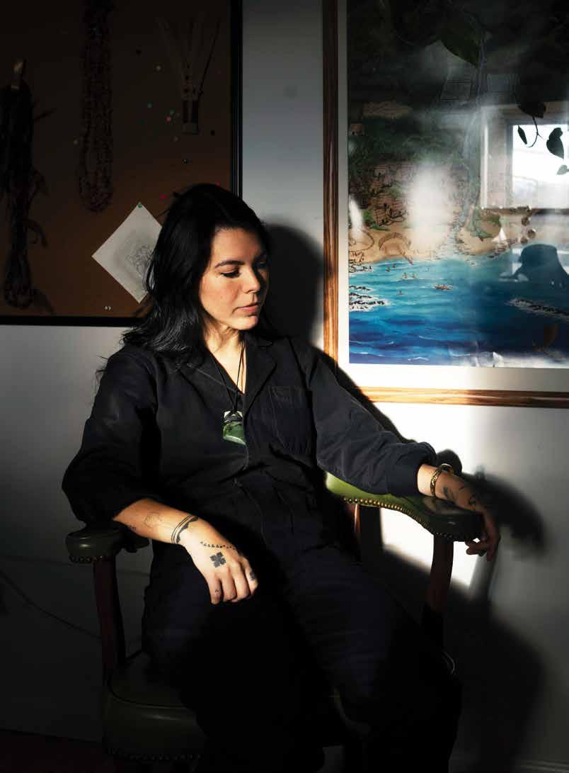 “IF YOU’RE NOT BORN INTO A COMMUNITY HERE, IT’S HARD TO FIND OR CREATE ONE INITIALLY,” SHE SAYS, AN EXPERIENCE MIRRORED IN HER PAINTINGS OF FANTASTICAL STORIES POPULATED BY CASTLES, FOREST REALMS, AND CARETAKING SPIRITS
