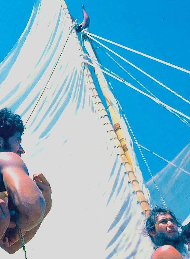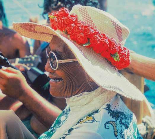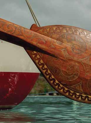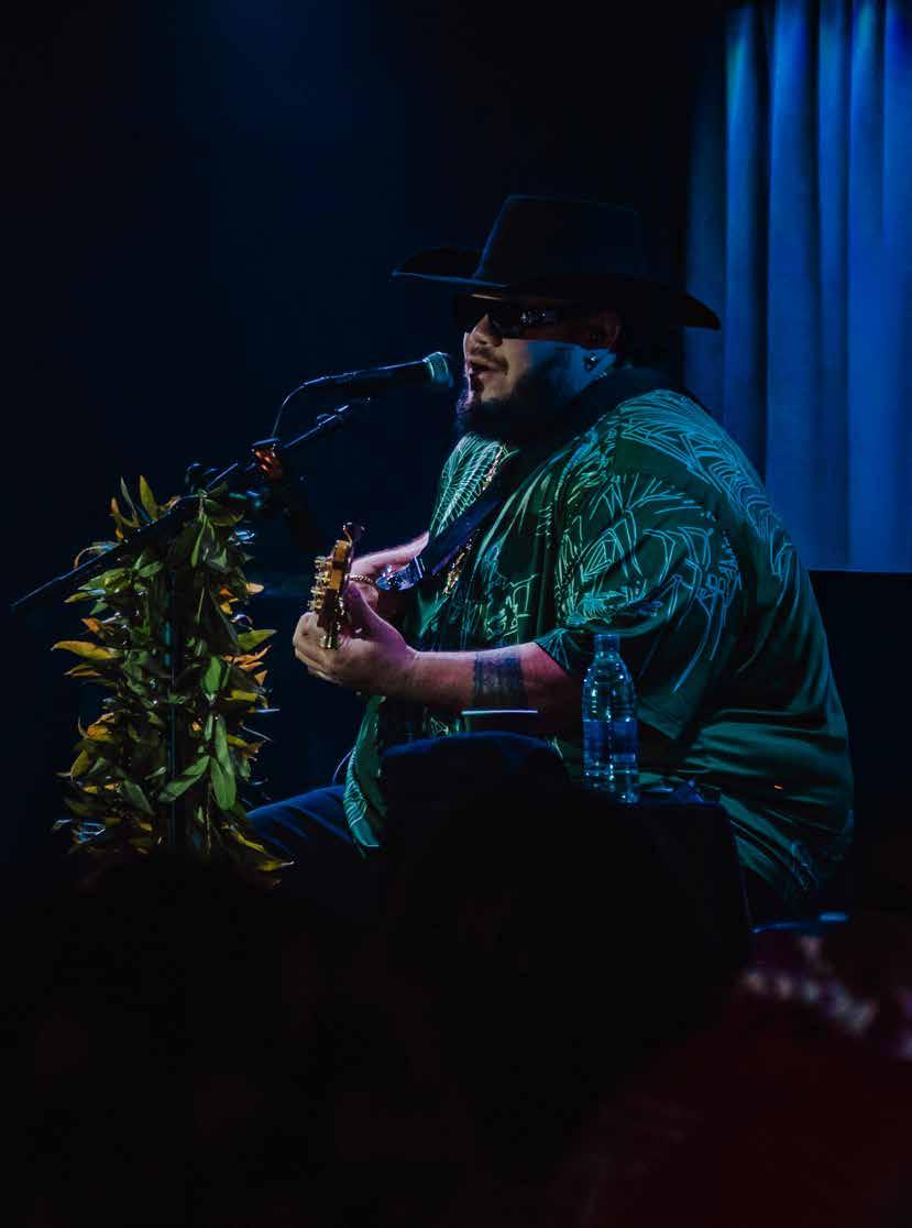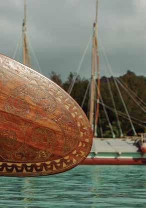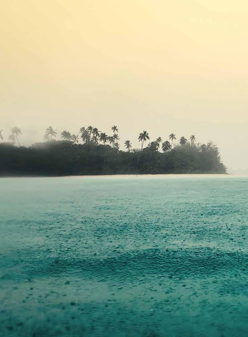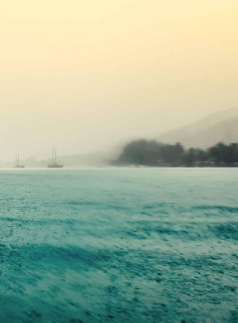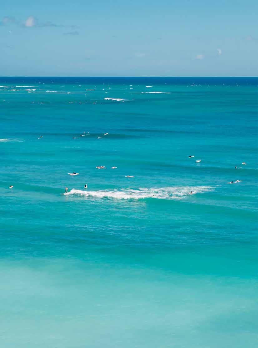 through sustainable practices. She also co-founded Waiwai Collective, a contemporary Hawaiian space for community, culture and commerce, and is creative director for the design house of Malanai. In her second contribution to Flux Hawaii, on page 72, she explores the songs of voyaging canoes and highlights the collaborative project Manuihu, a small hui of wa‘a crew dedicated to uplifting the value and legacy of mele wa‘a. The crew includes Kainani Kahaunaele, Kelli Heath Cruz, and their ‘ohana wa‘a. Makasobe and crew contributed creative direction, visual storytelling, and design support for this feature saying, “our intention is to help bring the spirit and intention of Manuihu to life,” she says.