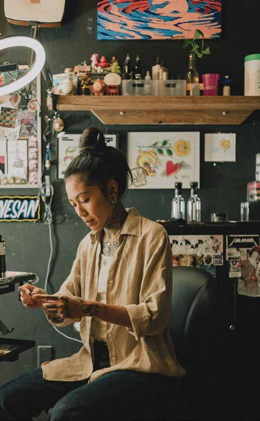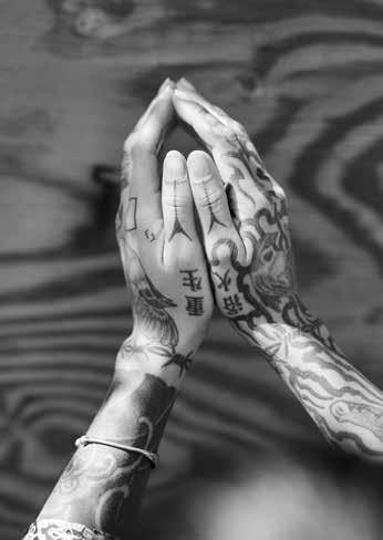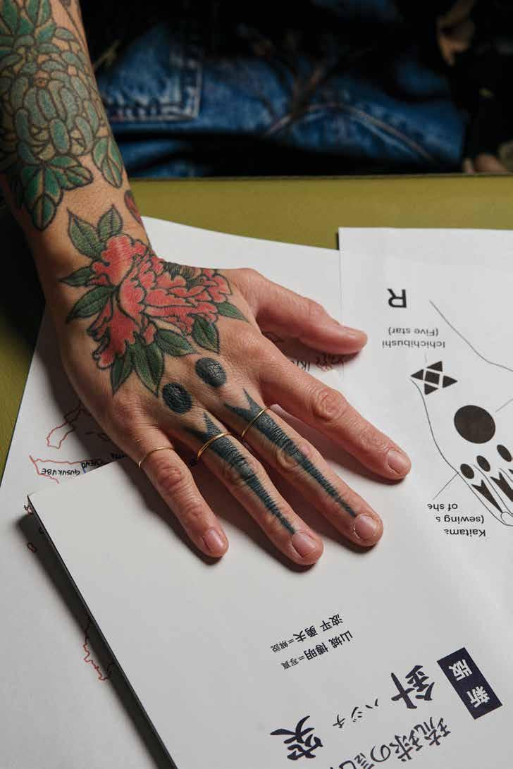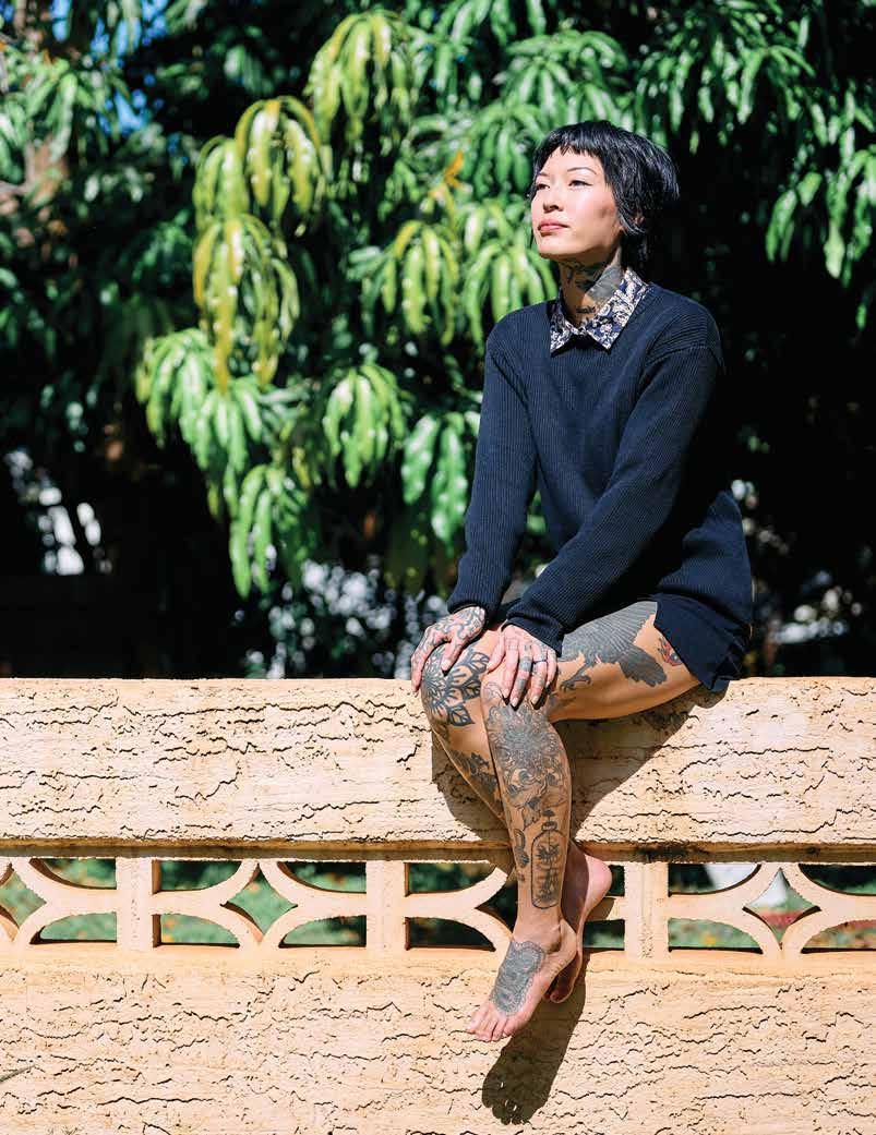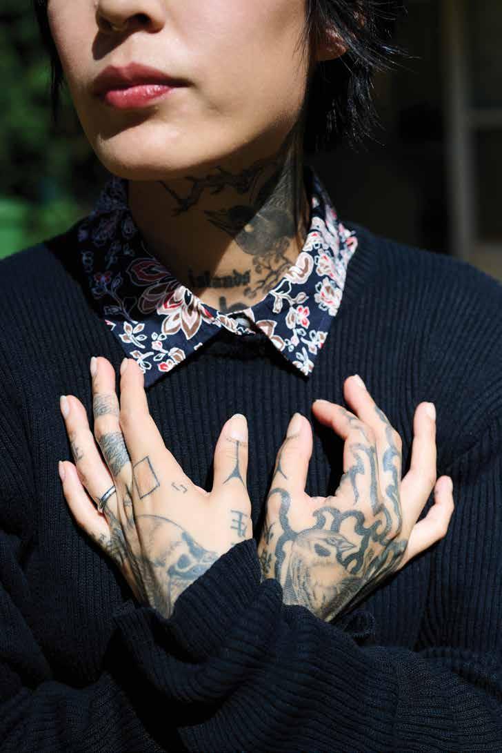 grandma’s passing she has looked for ways to connect to her Okinawan roots, creating portraits of two Okinawan tattooists on O‘ahu for the feature about hajichi on page 104. “Hajichi is a beautiful tradition that brought Uchinanchu women together hundreds of years ago and in its bold revival is doing the same today,” she says. “I felt honored to shoot Bee and Kiya and hope to one day get my first hajichi from one of them! It feels especially important in today’s climate to bring back something that was once deemed taboo and nearly lost due to assimilation.”