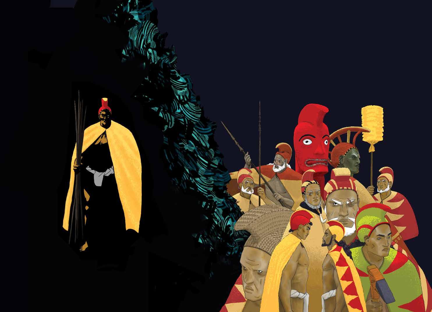Reflecting the dynamism of stories in every edition, our new issues are released with multi-cover runs to express the kaleidoscopic and shifting landscape of the islands. L to R: 1. Outskirts of the Forest Castle, an otherwordly painting featuring a heroine and nishikigoi; 2. As Hōkūle‘a sails off of Hōnaunau, the offwatch crew sings to her, including Kaipo, Joe Tassill, Steve Morse, Liko Martin, and Charlie.