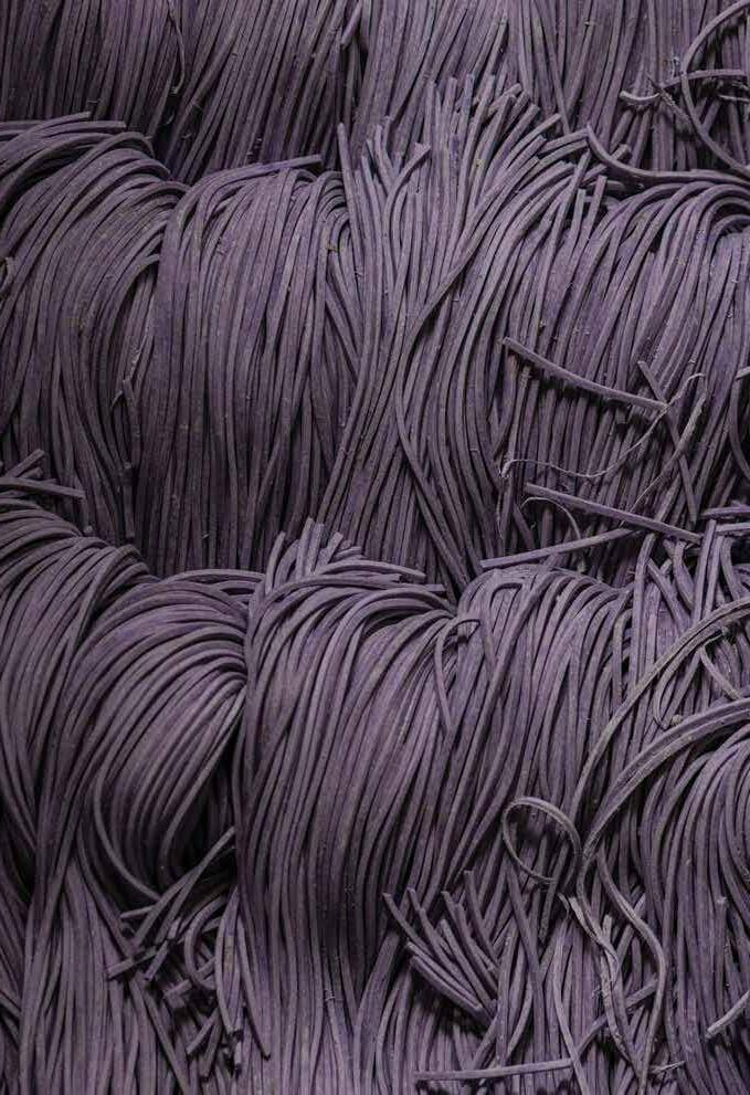 AT ADELA’S COUNTRY EATERY, TARO, ‘ULU, AND MORINGA ARE TRANSFORMED INTO VIVIDLY COLORED NOODLES THAT ARE AS VISUALLY STRIKING AS THEY ARE SUSTAINABLE