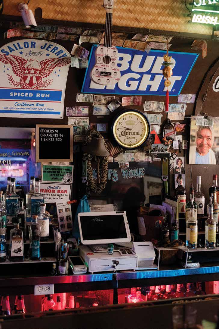 Following the news of its closure, regulars have continued showing up. Cooks from Fête, a James Beard Awardwinning restaurant across the street, stop by nightly for pau hana. “It’s the perfect hole-in-the-wall spot to have a drink,” said line cook Nicholas Galvez. “We’re not looking for fancy drinks. We just want a really cold beer and good company.” For him, Smith’s offers “really terrible karaoke, really cold PBRs, and some of the best conversations I’ve had with my co-workers after really hard nights. It sucks to see it go.”