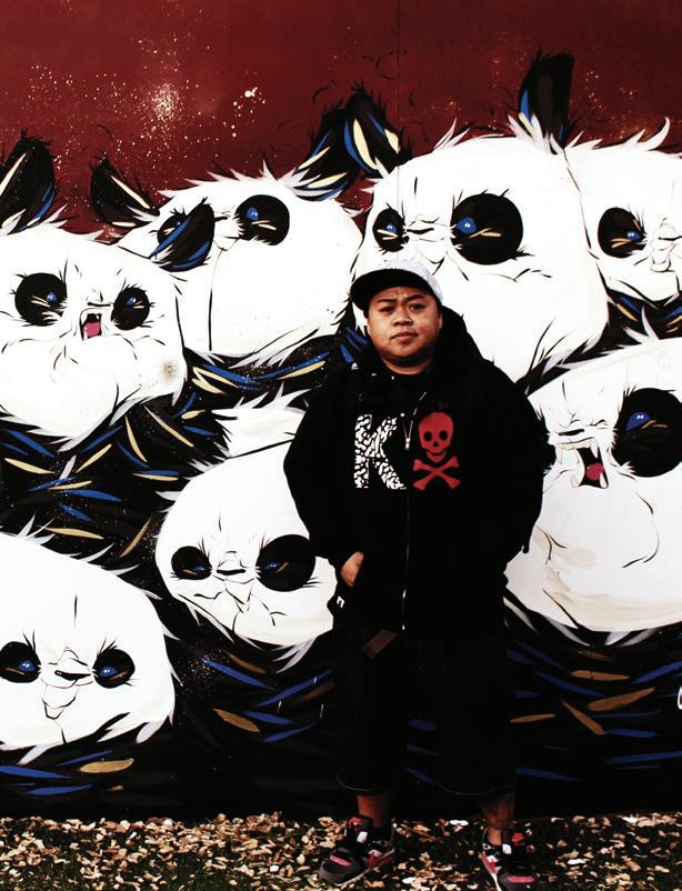 Channeling the collaborative spirit of Pow Wow Hawai‘i (see page 34), Hong Kongbased artist Jasper Wong, known for his frosty illustrations, magical laser beams, and an obsession with the color pink, doodled around with artist friends Samuel Rodriguez and Bu to create a kick-ass (!) version of our cover. Visit our website to see the full cover in all its uninterrupted glory.