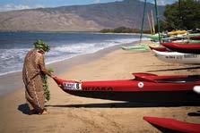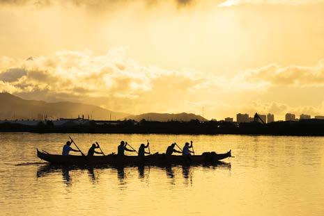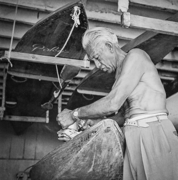 After Kūhiō’s death, A‘a was gifted to the Bishop Museum in 1923. By 1952 it had begun to decay, so waterman Herbert Dowsett (Allan’s grandfather), brought it to his home in Lanikai to restore it. In 1953, A‘a became one of the club’s first racing canoes. In the 1960s, A‘a returned to the museum, and when again time took its toll, Allan led the effort to fix it and put it back in the water in 2000; his brother Jay did so again in 2012. “Our job as custodians was to keep the A‘a alive. Because if it isn’t alive, it’s gone,” Allan says. “If you were restoring a car, would you park it in the garage or take it out?” asks Jay. “Canoes are meant to be on the water.”