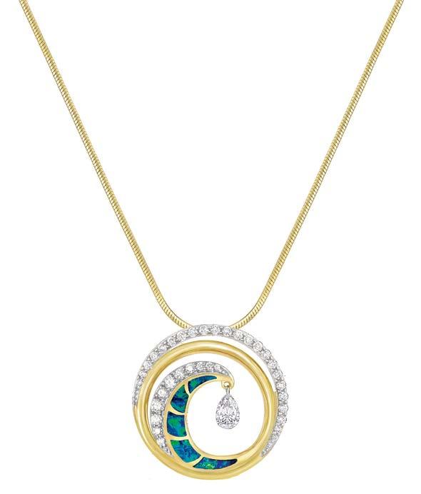 Green Flash Sunset Pendant with Opal Inlay, Diamonds