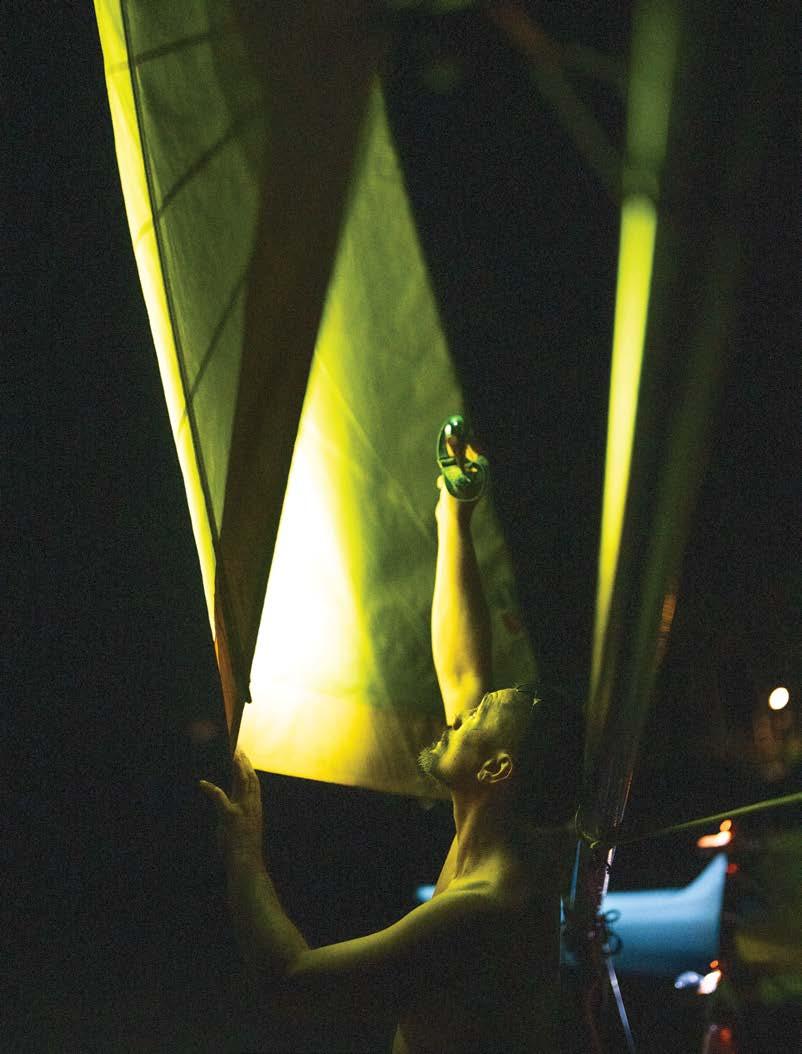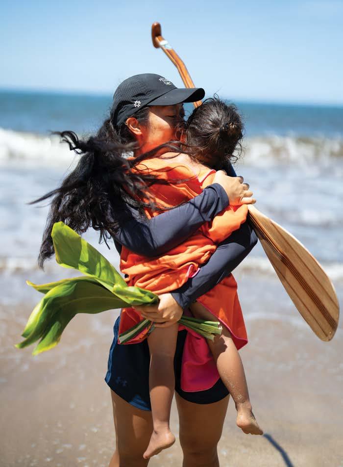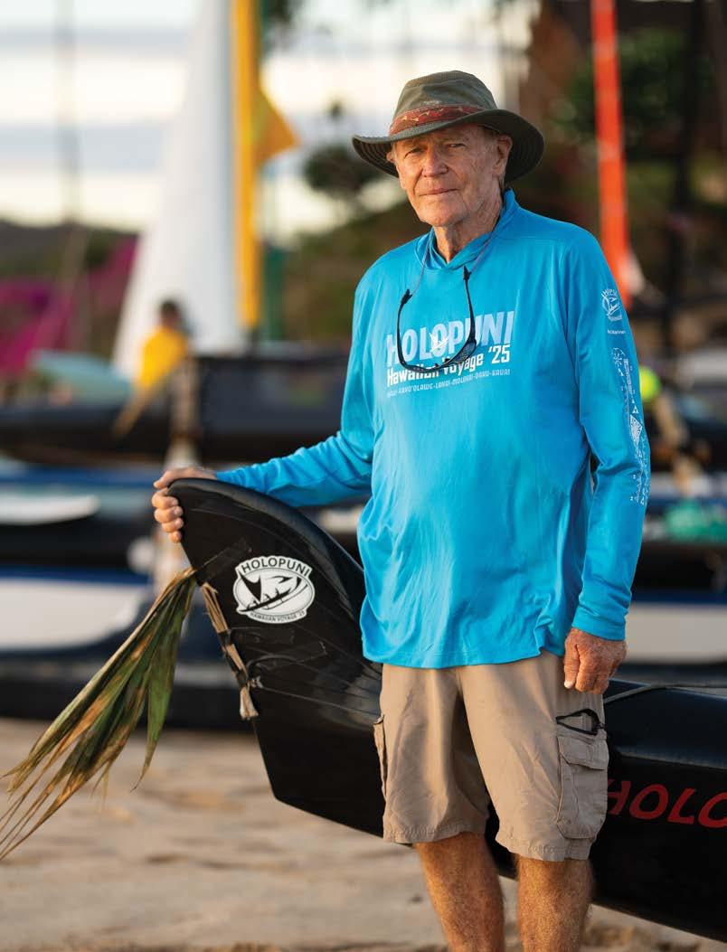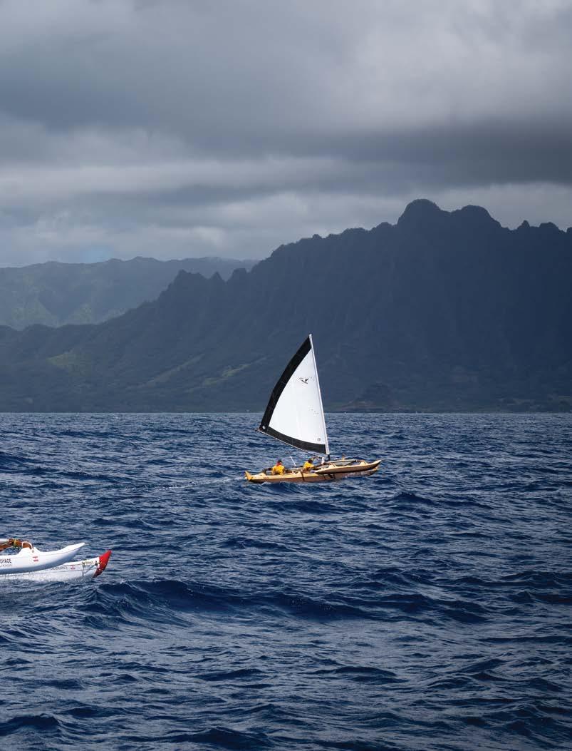 A couple of hundred spectators watch from shore as A‘a leads the procession, her hull cutting through the water with the same quiet authority as over a century ago. Seated in the canoe are her caretakers, including Jay Dowsett, who’s patched and sanded and planed her back to seaworthiness time and again. Whenever he’s working on a canoe, he says, he looks for its “heart.” “You get to a spot, and you notice it’s a good spot, and you hang out there for a little while and do a little more work,” he says. “The A‘a has a really big heart.” hh