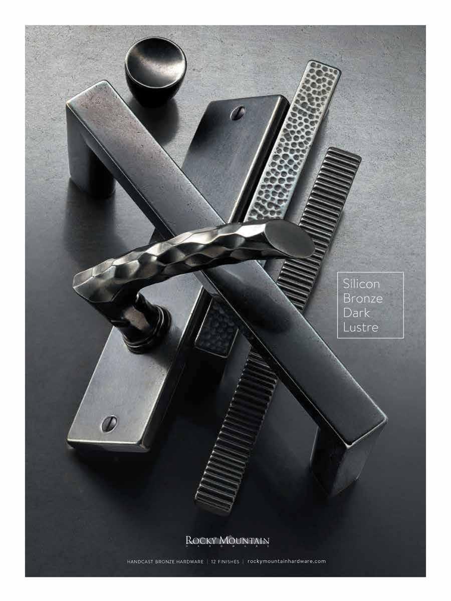 Starting with The Collection in this issue (p. 130) might be just the way to try on your own likes and dislikes before diving into the subtleties of landscape architecture in Link To The Land featuring Ron Lutsko (p. 50), or the complexities of crafting hardware in our story Old World Wonders (p. 90), about Rocky Mountain Hardware.