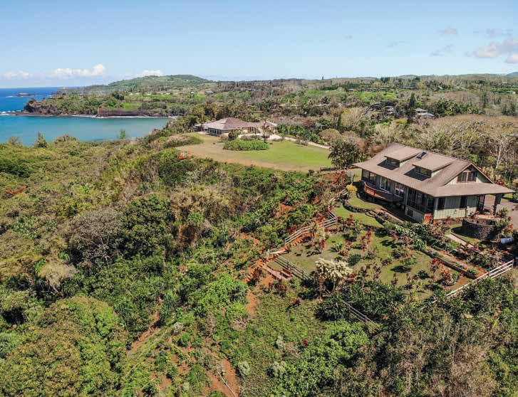 Perfectly perched above the Pacific, this 4-bedroom, 3-bath home offers stunning ocean and mountains views. Upon entry through the private gate to the 3.68-acre estate, the driveway climbs past an exotic fruit orchard to the spacious, secluded hilltop home. With 3,000 sq. ft. of living space, the home was designed and sited to maximize the panoramic views of Kalihiwai Bay, the Kilauea Point Lighthouse, and the Namahana mountain range from every room in the home. This property, rich in history, extends down into the makai or ocean-facing valley and has been meticulously landscaped with native Hawaiian flora and fauna and a walking path that reaches the shoreline.