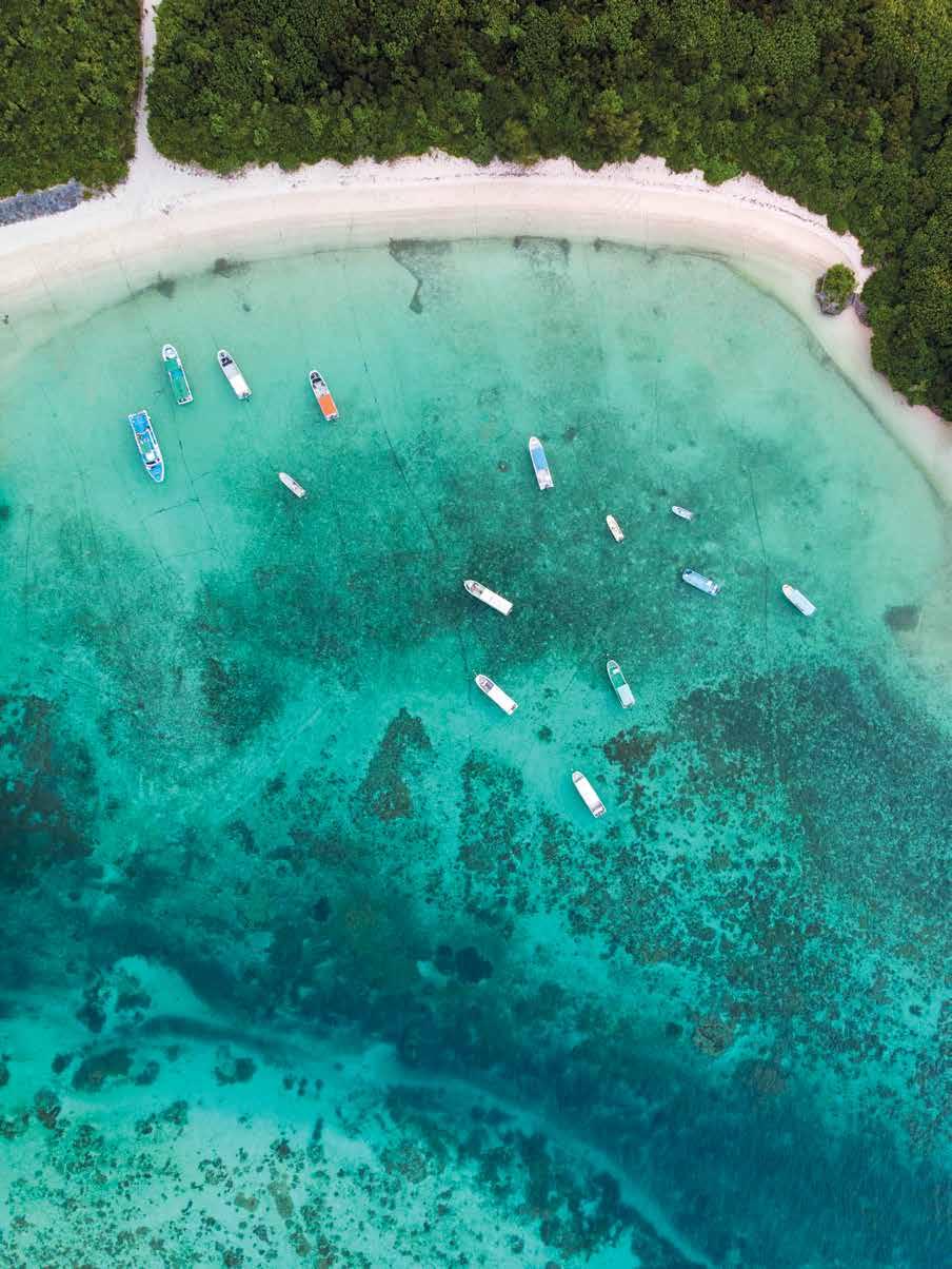 西表島には不思議なエネルギーが流れている。巨大な密林や鬱 蒼としたマングローブの林、何キロメートルも続く砂浜の海岸線、 曲がりくねった入り江、手つかずの珊瑚礁といった⾵光明媚な自 然景観には、⼈を惹きつけてやまない魅力がある。このような未開 発の土地が島全域に広がっていることを考えれば、琉球文化と自 然が切っても切れない関係にあるのは当然のことと納得できる。