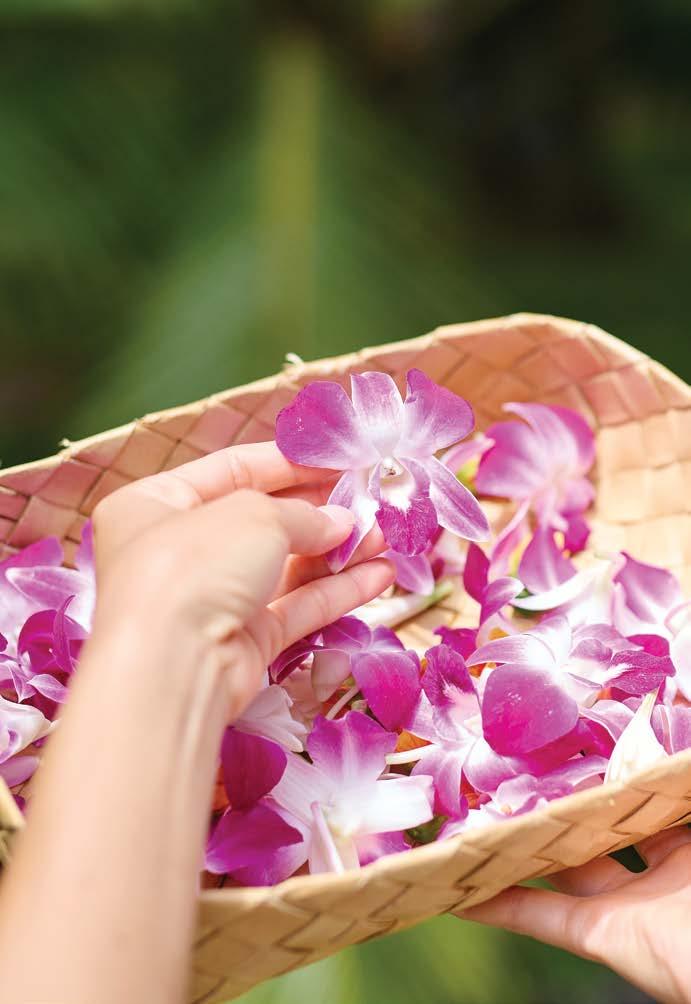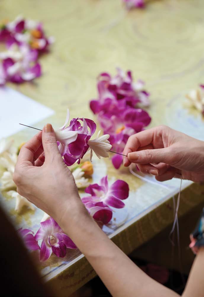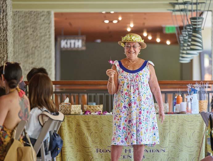The center stands in the midst of Helumoa, a wahi pana (storied place) steeped in heritage and culture. Here, we honor Helumoa’s history through a suite of enlightening cultural offerings (page 18). Join us at the Royal Grove for a celebration of mele (music) and hula as the sun sets beyond the horizon. Or take lessons on the art of lauhala weaving or lei-making, both free and open to the public. In this issue’s culture story, learn about how our beloved lei-making kumu (teacher), Aunty Macky, was shaped by a life-long love for the craft (page 52).