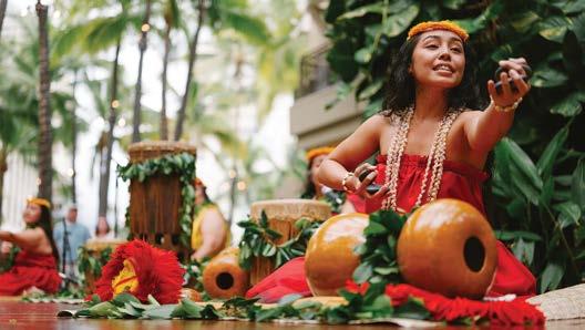 ロイヤル・ハワイアン・センターがあるのは、ヘルモアと呼ばれたワヒ・パナ[聖 地]の中心。歴史と文化に彩られたこの土地の伝統を重視し、充実した文化プ ログラムをご用意しています(18ページ)。水平線の向こうに太陽が沈む夕暮 れにはロイヤル・グローブでメレ[音楽]やフラをご鑑賞ください。ラウハラ編み やレイづくりのレッスンは、どなたでも無料でご参加いただけるプログラム。本 号のカルチャーストーリーでは、人々に慕われるクム[先生]、アンティ・マッキ ーのレイづくりへの愛と情熱をご紹介します(52ページ)。